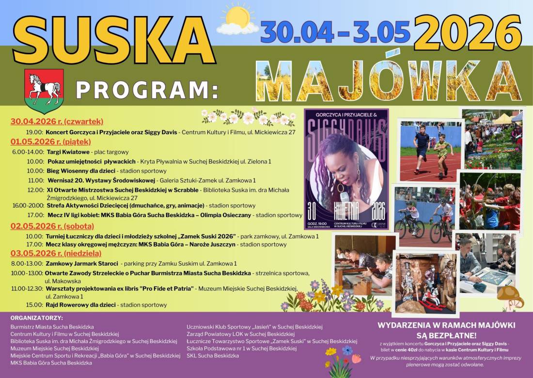 Suska Majówka 2026. Cztery dni muzyki, sportu i rodzinnych atrakcji / Zawoja stawia na energię natury. Nowy projekt odmieni centrum miejscowości / Służby łączą siły dla bezpieczeństwa w parkach narodowych Małopolski / Suskie szkoły wkraczają do świata high-tech. Nasza młodzież podbija krakowską Nokię / Nadleśnictwo Sucha współfinansuje remonty dróg w regionie / Powiat suski w centrum śledztwa CBA. Miliony i korupcja na ławie oskarżonych / Damian Polak liderem w powiecie suskim, Agnieszka Żądło w zarządzie - Zmiany w Konfederacji Korony Polskiej / Babiogórzanki znów zachwyciły! Makowskie śpiewaczki wśród najlepszych na prestiżowym festiwalu / Suski Klub Karate najlepszy na jubileuszowym turnieju! Gospodarze triumfowali w Suchej Beskidzkiej / Sprawdź, gdzie zabraknie prądu w tym tygodniu / Majówka w Zawoi – tradycja, muzyka i aktywny wypoczynek pod Babią Górą