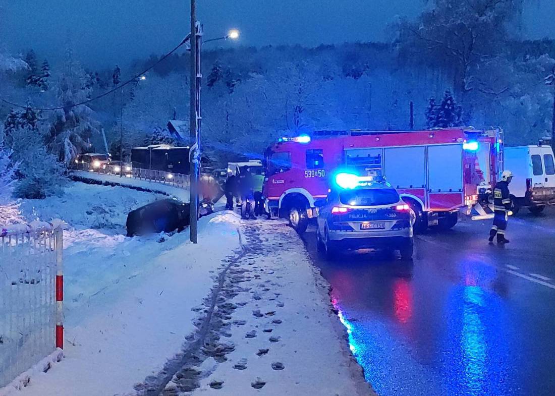 Dachowanie samochodu w Stryszawie!Zdarzenie drogowe w Stryszawie. 19.11.2025 1 0