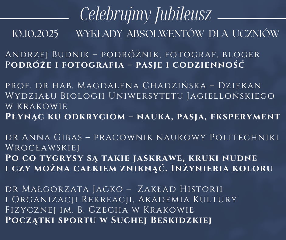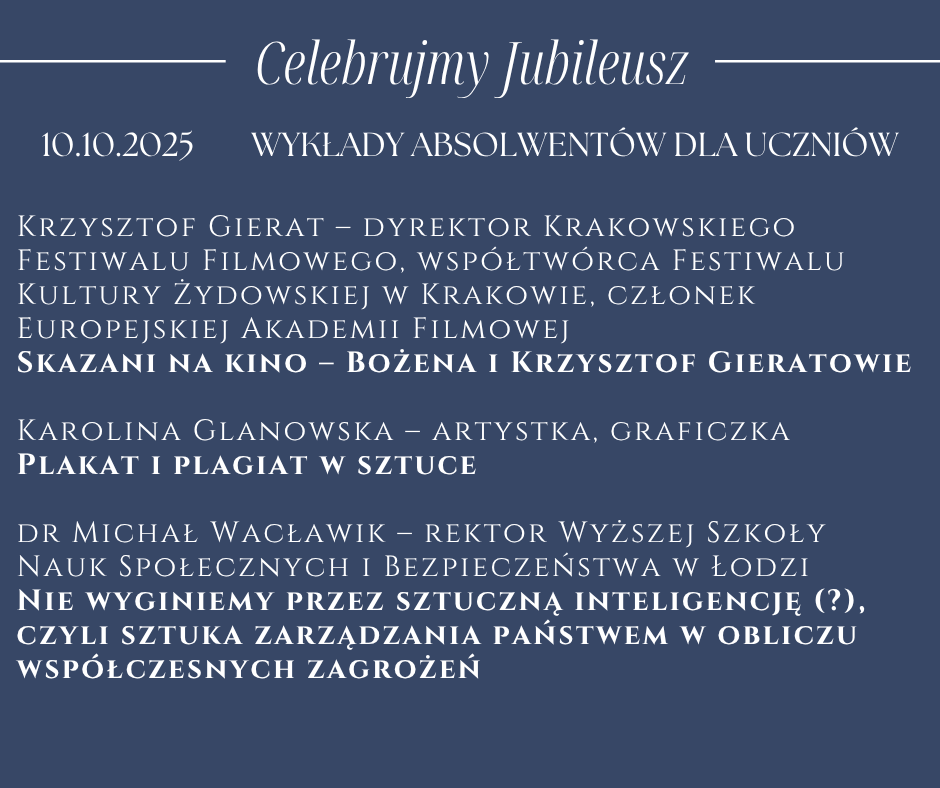 Szkoła serdecznie zaprasza wszystkich uczniów, absolwentów, nauczycieli oraz przyjaciół liceum do udziału w jubileuszu.