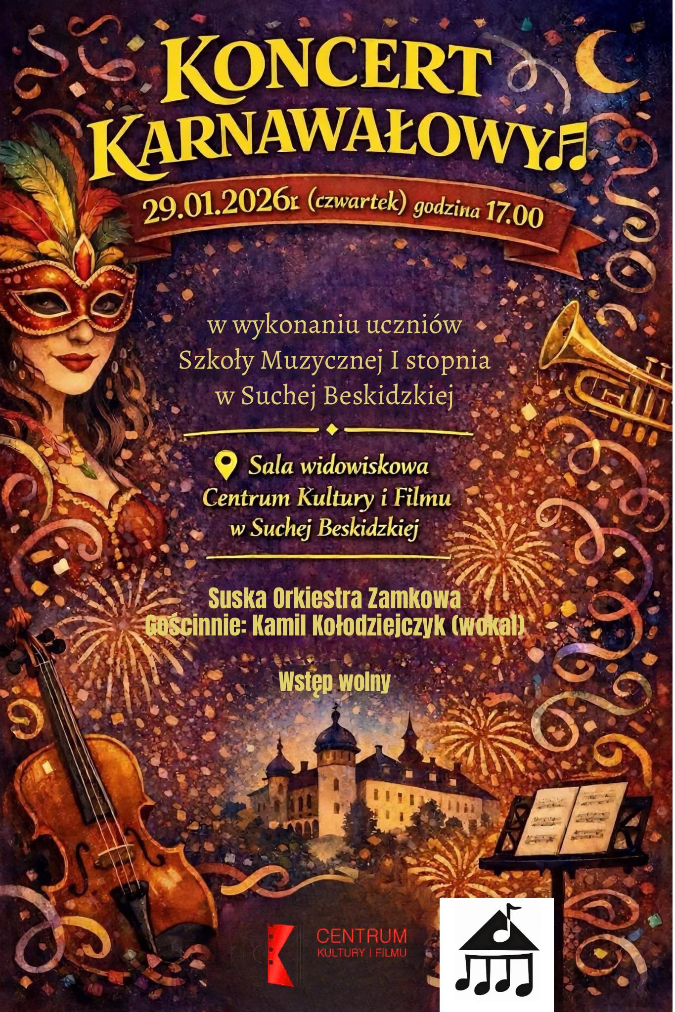 Koncert ma charakter otwarty – wstęp jest wolny, organizatorzy serdecznie zapraszają wszystkich mieszkańców oraz gości regionu do wspólnego świętowania i karnawałowej zabawy przy muzyce.
