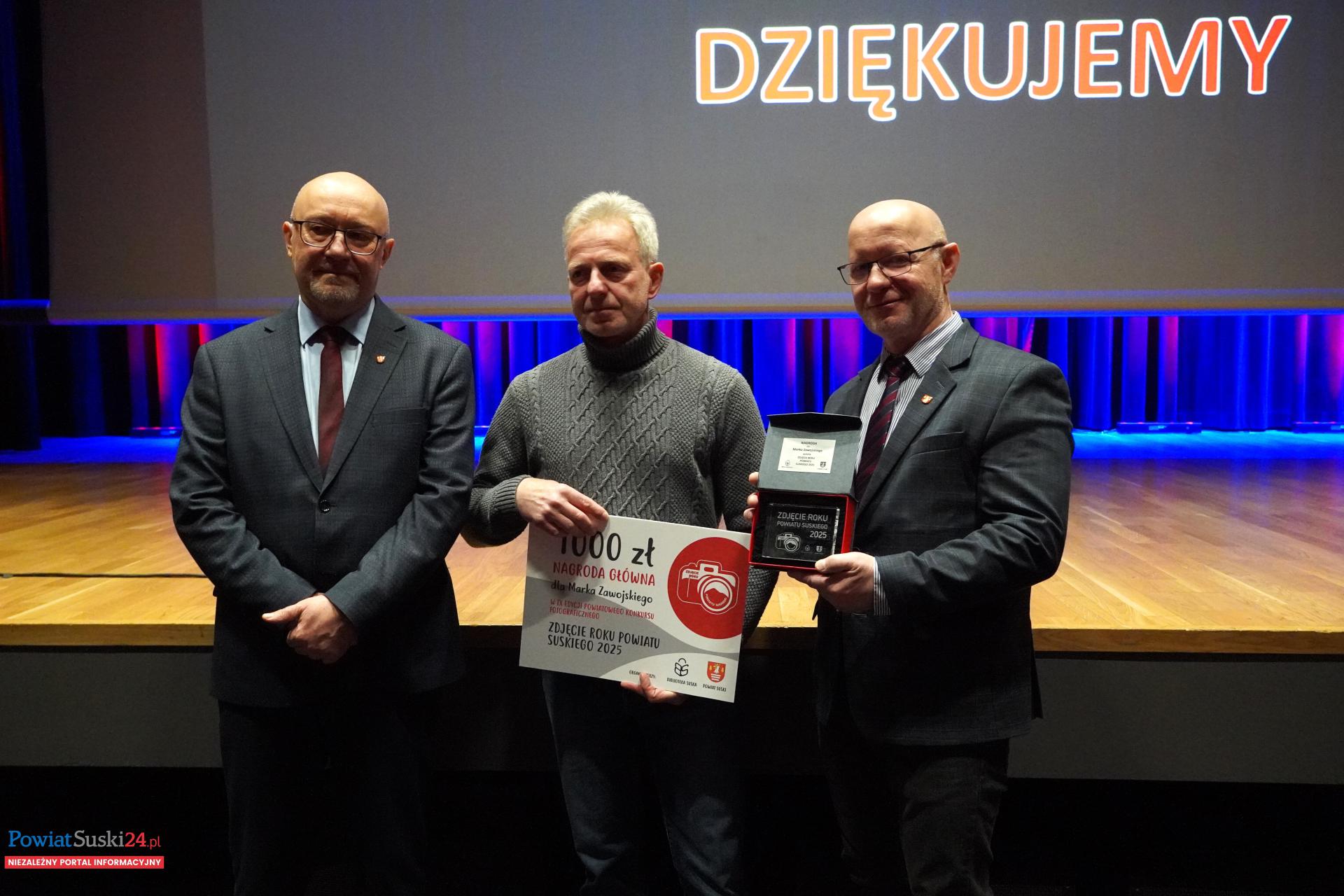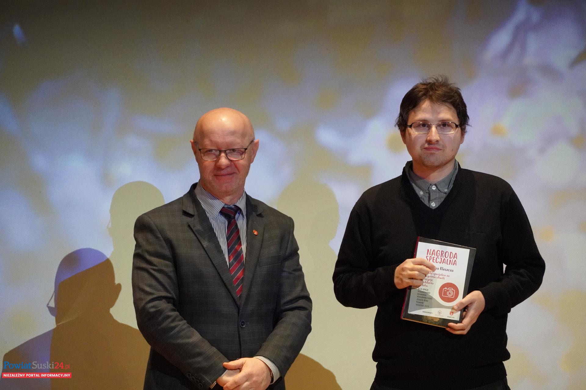 Autor Zdjęcia Roku Powiatu Suskiego 2025, Pan Marek Zawojski odebrał pamiątkową statuetkę oraz nagrodę pieniężną w wysokości 1000 zł ufundowaną przez Starostwo Powiatowe. Laureaci otrzymali pamiątkowe dyplomy oraz nagrody książkowe.