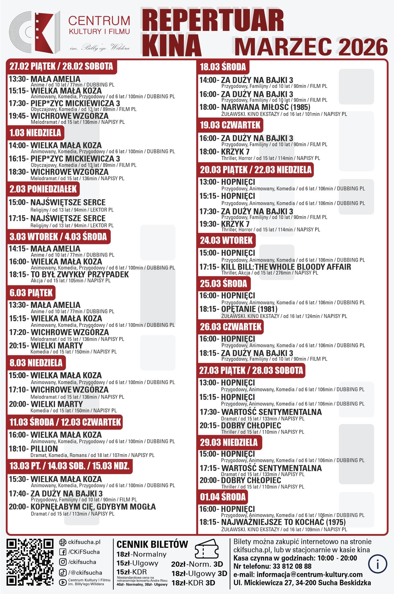 Bilety do zakupu online: https://ckifsucha.pl/repertuar-kina/ lub tradycyjnie w kasie kina.