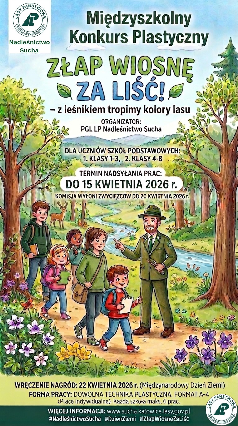 Termin składania prac upływa 15 kwietnia 2026 roku. Uczestnicy powinni dostarczyć je do siedziby Nadleśnictwa Sucha. Rozstrzygnięcie konkursu zaplanowano do 20 kwietnia, natomiast uroczyste wręczenie nagród odbędzie się 22 kwietnia, w Międzynarodowy Dzień Ziemi.