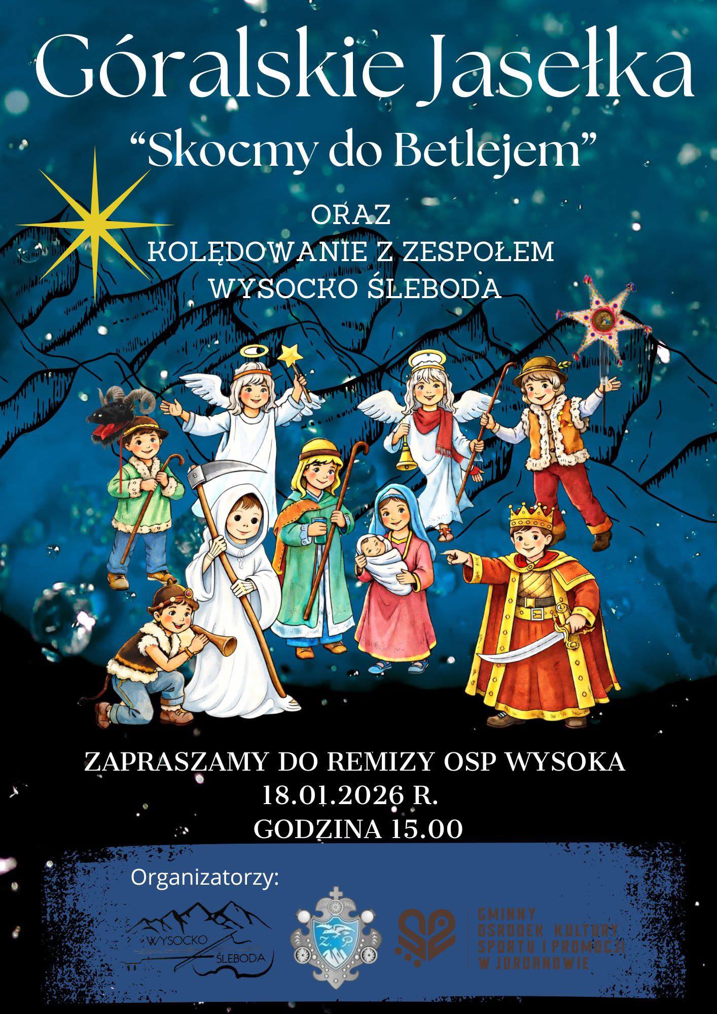 Zespół Regionalny „Wysocko Śleboda”, Związek Podhalan Oddział w Wysokiej oraz Gminny Ośrodek Kultury, Sportu i Promocji w Jordanowie, Filia w Wysokiej, serdecznie zapraszają mieszkańców i gości na tradycyjne Jasełka Góralskie.