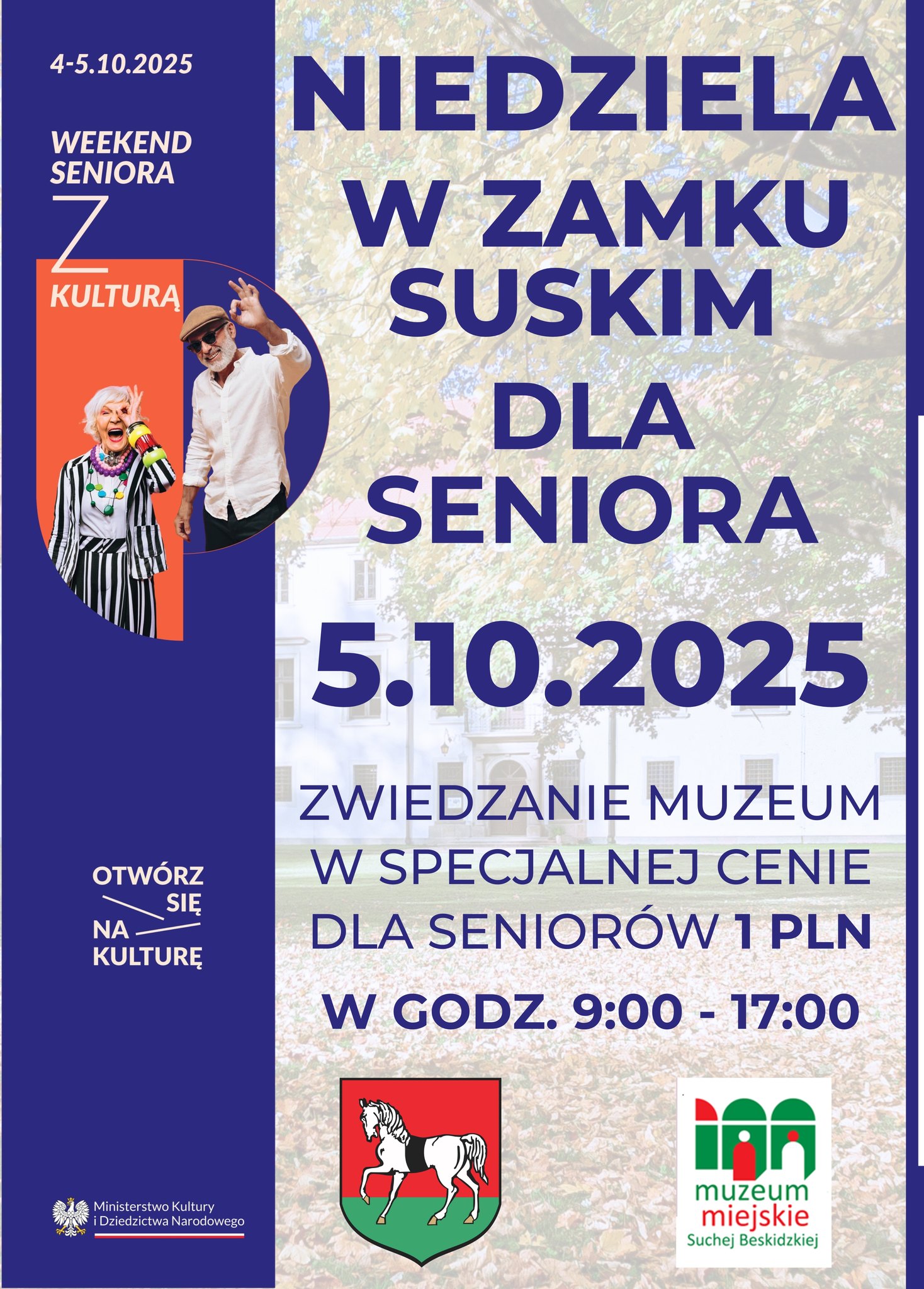 Muzeum Miejskie Suchej Beskidzkiej dołącza do ogólnopolskiej akcji „Weekend Seniora z Kulturą”, organizowanej przez Ministerstwo Kultury i Dziedzictwa Narodowego.