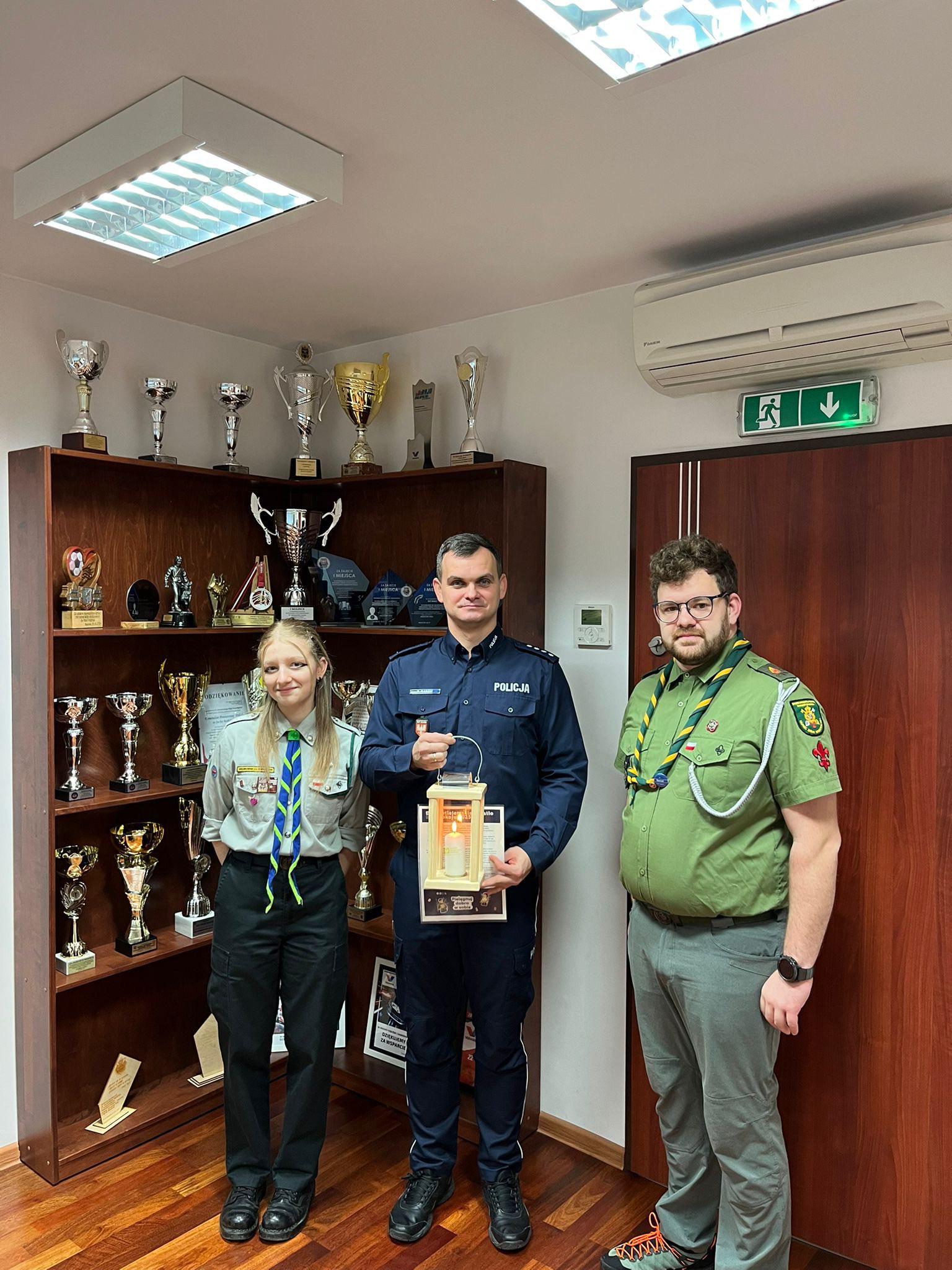 22 grudnia br. harcerze przekazali Betlejemskie Światło Pokoju policjantom oraz pracownikom suskiej komendy. I Zastępca Komendanta Powiatowego Policji w Suchej Beskidzkiej, nadkom. Sebastian Barcik, w imieniu kierownictwa jednostki serdecznie podziękował za pamięć o funkcjonariuszach i pracownikach Policji oraz za ten symboliczny dar. Podczas spotkania złożył harcerzom i ich rodzinom świąteczno-noworoczne życzenia, wręczając drobne upominki.