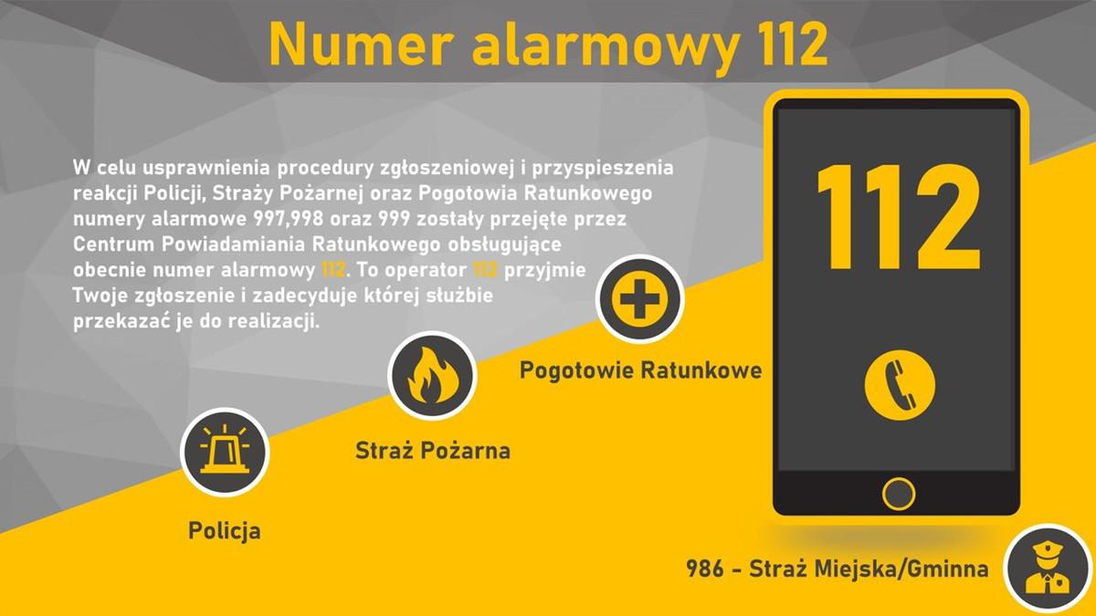 - Numer alarmowy 112 – Policja, Straż Pożarna, Pogotowie Ratunkowe