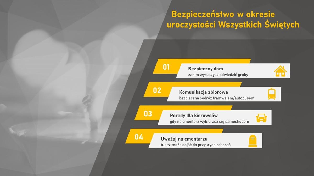 - Zachowaj szczególną ostrożność w pobliżu cmentarzy i przystanków komunikacji – ruch pieszych, zwłaszcza osób starszych, jest w tym czasie znacznie większy. Zwolnij, zwłaszcza po zmroku.