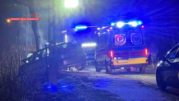Z nieustalonych na razie przyczyn samochód osobowy wypadł z drogi na łuku jezdni. Jak wynika z pierwszych informacji pojazd zjechał z jezdni i zatrzymał się na poboczu, uderzając w drzewo.