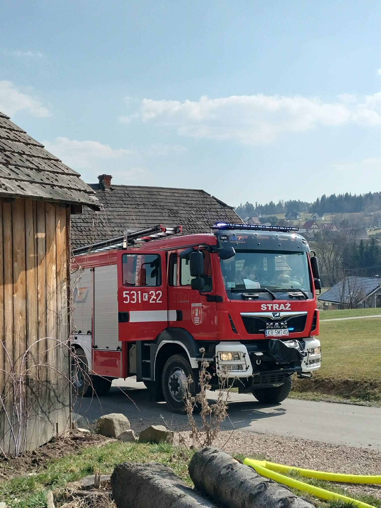 Na miejsce zdarzenia skierowano jednostki Ochotniczej Straży Pożarnej Łętownia oraz Jednostkę Ratowniczo-Gaśniczą w Suchej Beskidzkiej