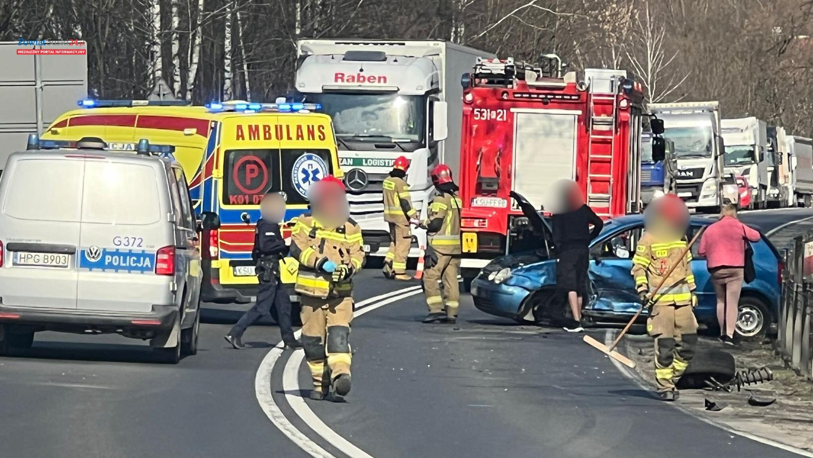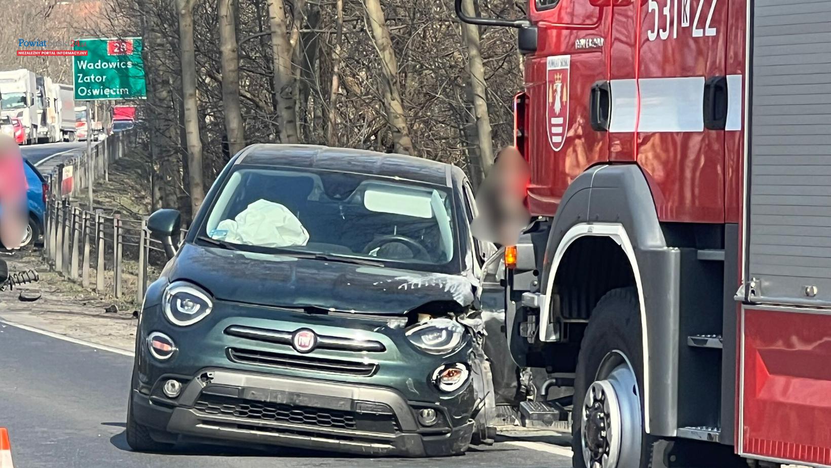 Z pierwszych informacji wynika, że doszło tam do zdarzenia drogowego z udziałem dwóch samochodów osobowych. Do kolizji doszło na drodze krajowej nr 28 w pobliżu skrzyżowania z ulicą Piłsudskiego.