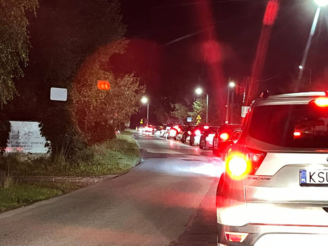 Foto: aktualny "korek" w Zembrzycach w związku z zamkniętym mostem.
