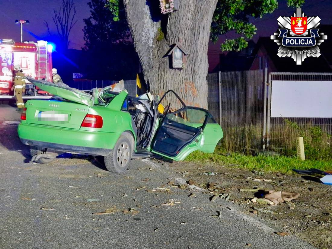Dziś, 5 sierpnia br., tuż przed godziną 3:00 w nocy, policjanci z Komisariatu Policji w Jordanowie otrzymali zgłoszenie o poważnym wypadku drogowym na drodze krajowej nr 28 w miejscowości Naprawa. Z informacji wynikało, że samochód osobowy marki Audi zjechał z jezdni i uderzył w drzewo.