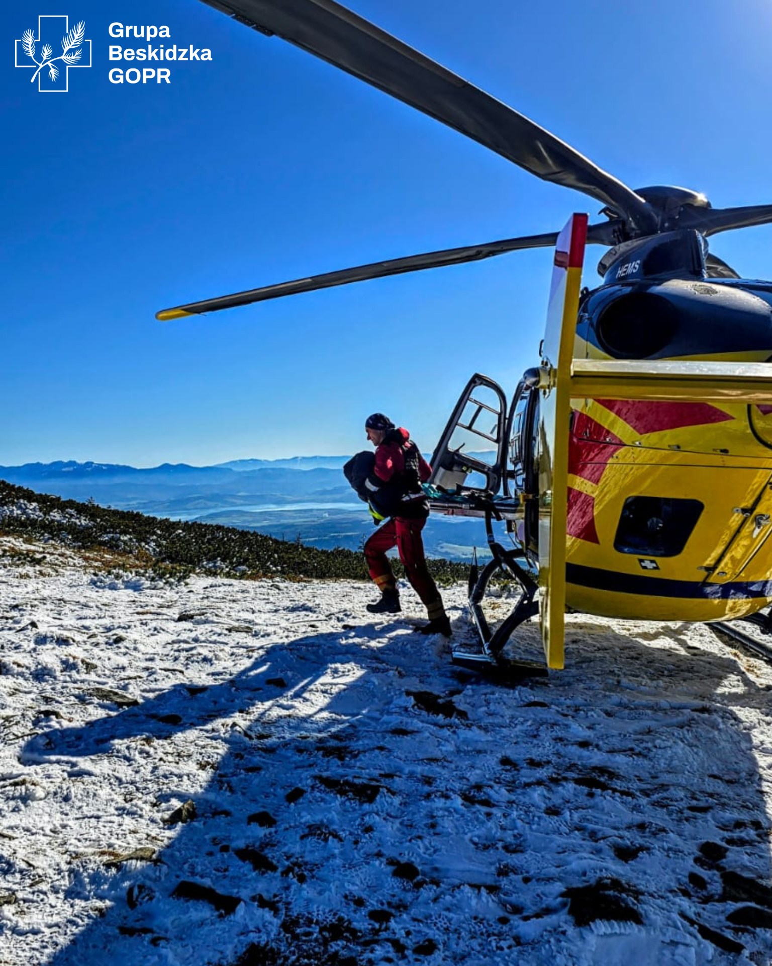 Ze względu na ukształtowanie terenu i konieczność długiego transportu, który wymagałby zaangażowania co najmniej ośmiu dodatkowych ratowników ochotników, zdecydowano się na wezwanie Lotniczego Pogotowia Ratunkowego. Sprzyjające warunki pogodowe pozwoliły na skuteczne przeprowadzenie akcji z powietrza. Po zabezpieczeniu poszkodowanego ratownicy przygotowali lądowisko i przyjęli śmigłowiec LPR #Ratownik4. Mężczyzna został przetransportowany do szpitala na dalszą diagnostykę i leczenie.