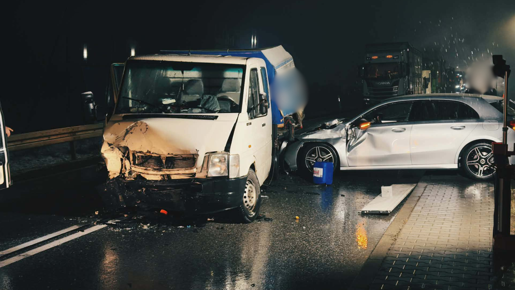W wyniku uderzenia Volvo uderzyło w jadącego za nim Mercedesa, powodując uszkodzenia także trzeciego samochodu.