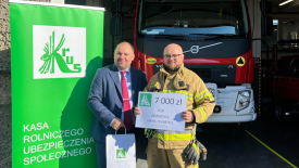 Wręczenie promesy odbyło się w piątek. W imieniu Kasy Rolniczego Ubezpieczenia Społecznego dokument przekazał Pan Łukasz Palarski, natomiast jednostkę OSP Zembrzyce reprezentował naczelnik Antoni Pilch.