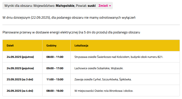 Gdzie zabraknie prądu w nadchodzącym tygodniu?