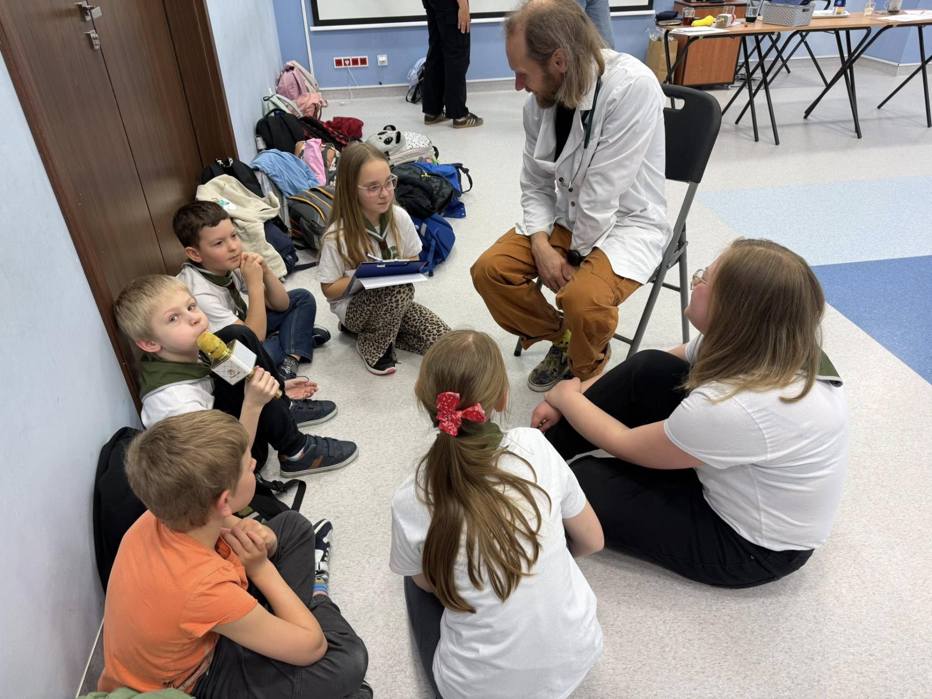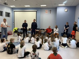 Spotkanie miało jednak szerszy wymiar, ponieważ udział w nim wzięli również przedstawiciele innych zawodów związanych z ratowaniem życia i zdrowia. Zuchy miały okazję porozmawiać z lekarzem, pielęgniarką, strażakiem, ratownikiem medycznym oraz ratownikiem górskim z Górskie Ochotnicze Pogotowie Ratunkowe. Każdy z zaproszonych gości opowiadał o swojej pracy, wyjaśniał, na czym polega niesienie pomocy oraz jak wygląda współpraca pomiędzy różnymi służbami w sytuacjach zagrożenia.