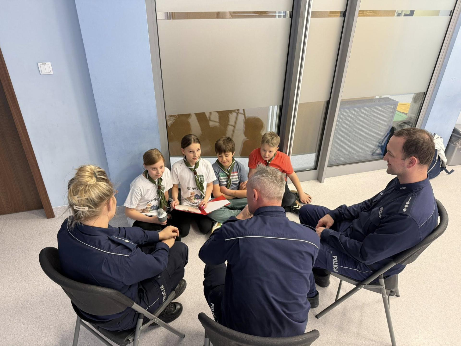 Zuchy z dużym zaangażowaniem przygotowały pytania dotyczące codziennej pracy policjantów. Dzieci chciały dowiedzieć się między innymi, jak wygląda służba w policji, z jakimi sytuacjami funkcjonariusze spotykają się podczas pracy oraz jakie cechy powinien posiadać dobry policjant. Mali reporterzy zadawali pytania z dużą ciekawością i odwagą, a policjanci chętnie dzielili się swoimi doświadczeniami oraz opowiadali o realiach swojej służby.