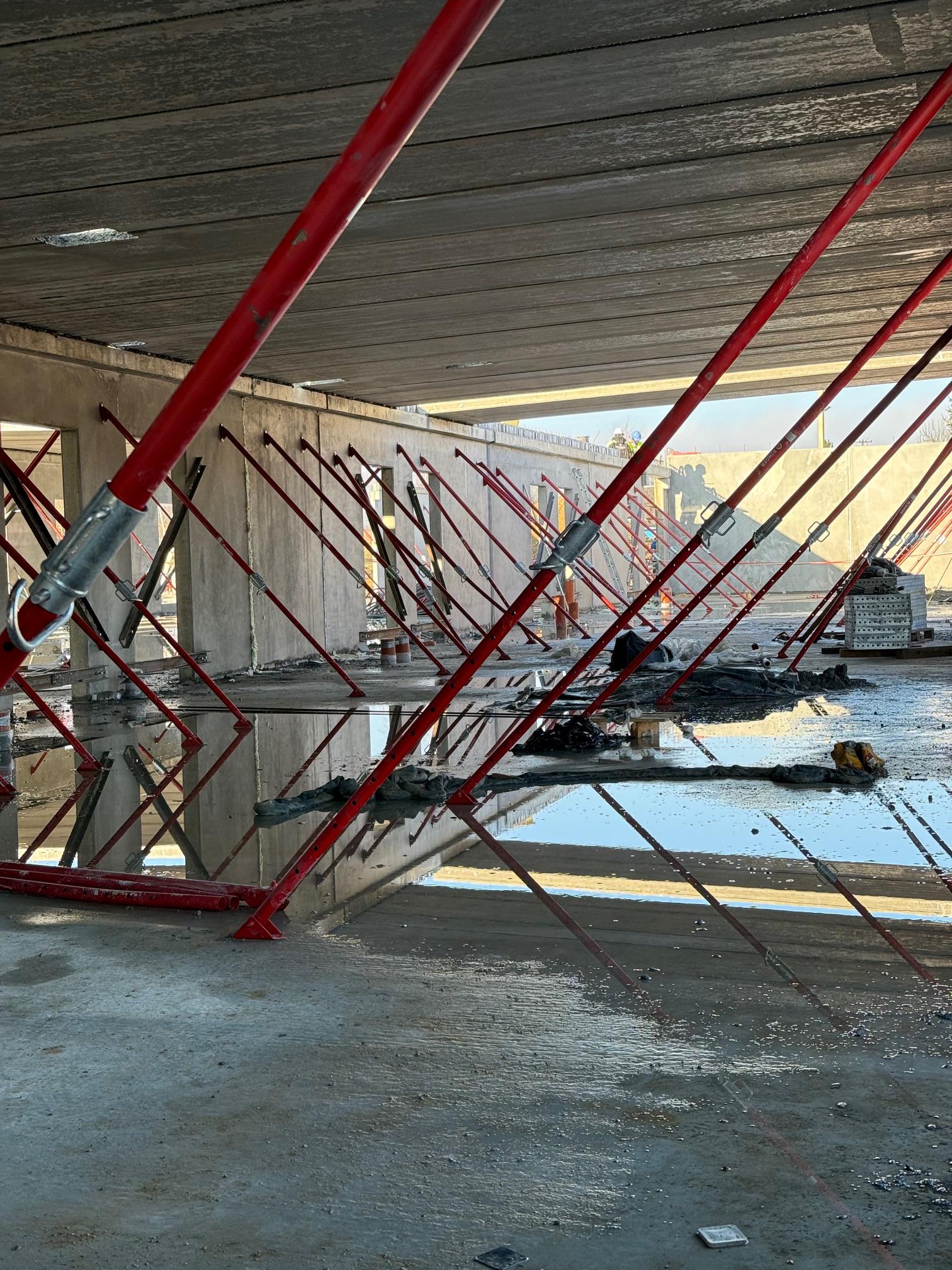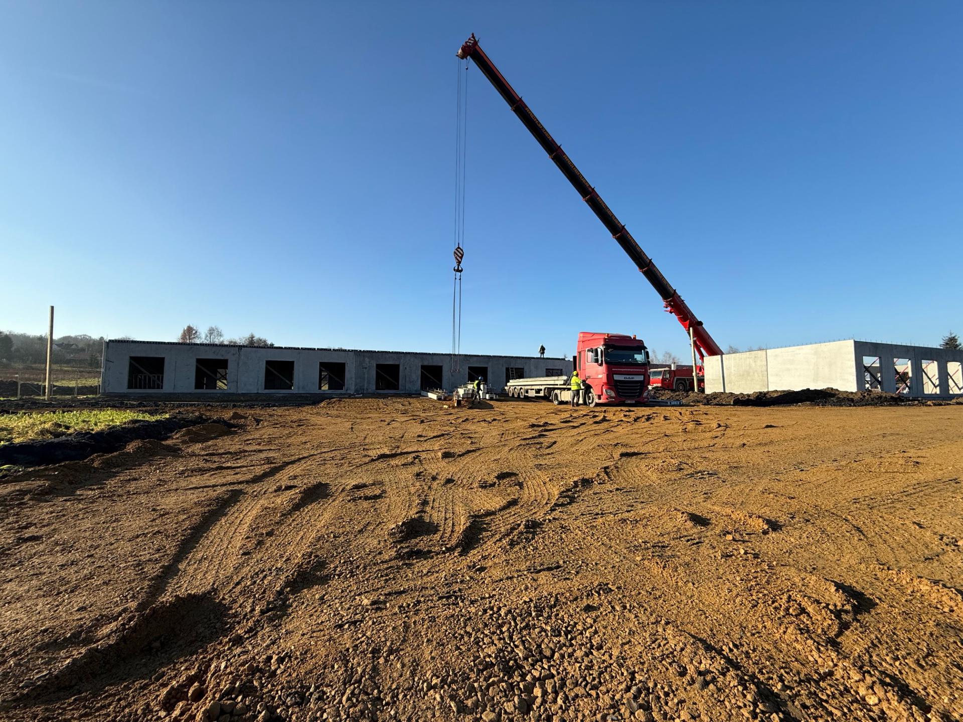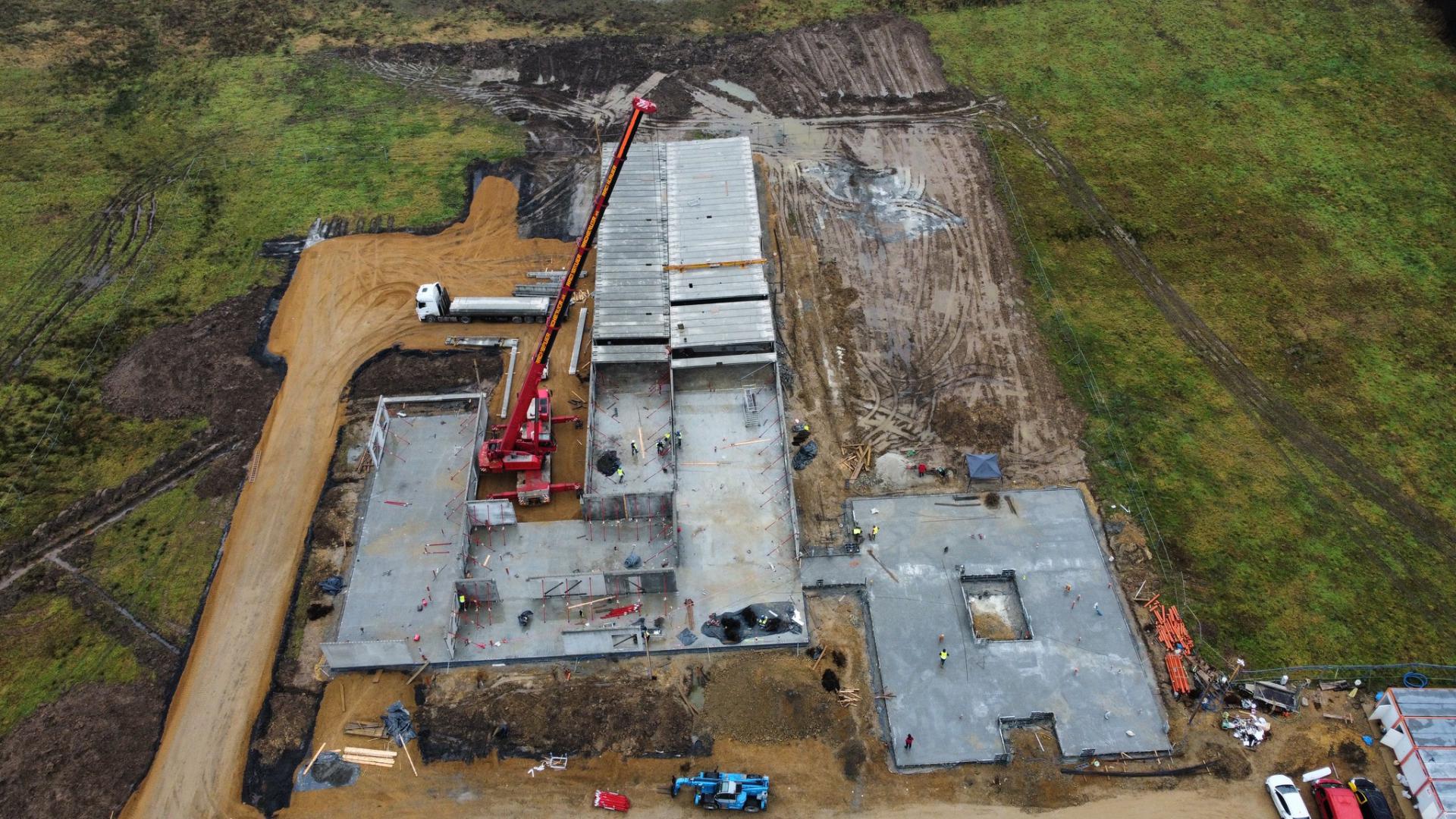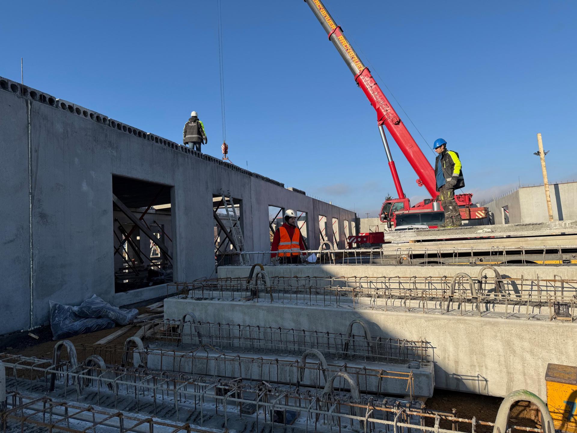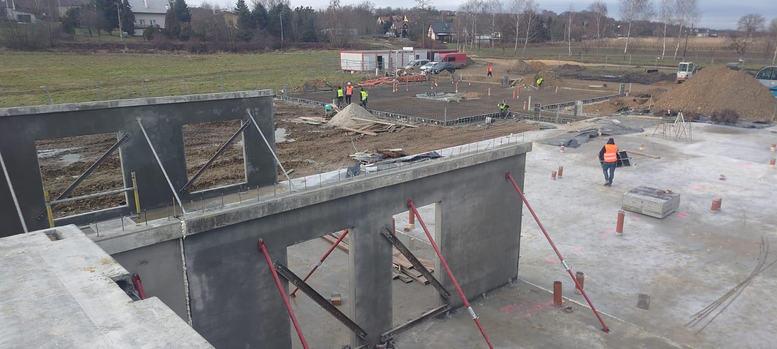 Do tej pory wykonano fundamenty budynku, przeprowadzono zbrojenie i betonowanie płyty fundamentowej opartej na palach. Jednocześnie przygotowano drogi technologiczne, a teren pod place i chodniki został utwardzony. Kolejnym etapem było wzniesienie pierwszych ścian nośnych, przy użyciu prefabrykowanych elementów żelbetowych, które zapewniają trwałość konstrukcji. Obecnie stropodach jest na etapie końcowym wykonania, co zamyka konstrukcję budynku i przygotowuje go do kolejnych prac wykończeniowych.