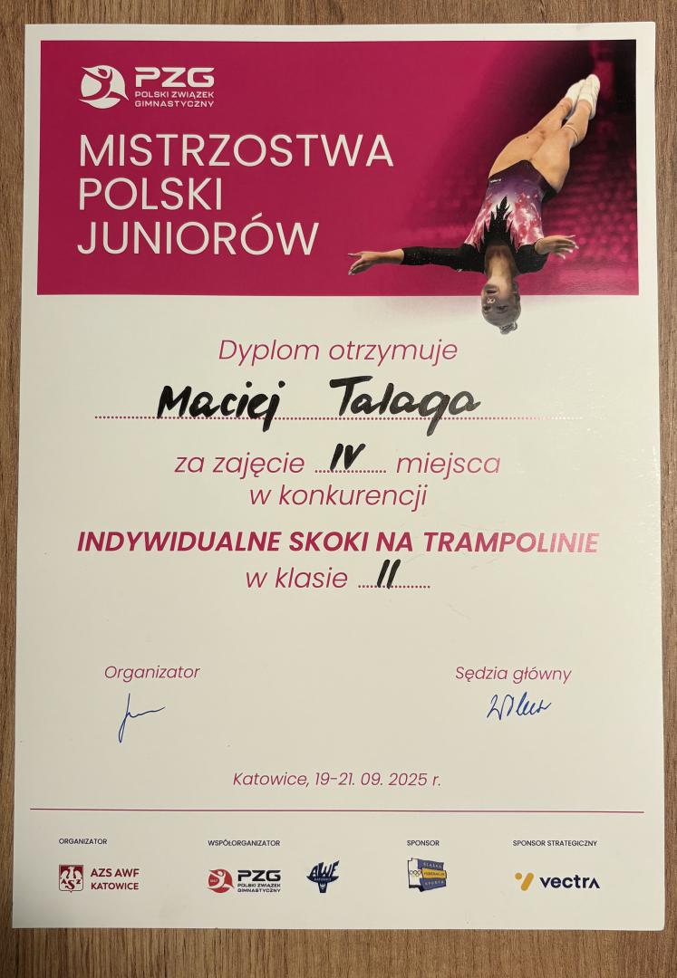 Dla mieszkańców powiatu suskiego szczególne znaczenie miały występy Macieja Talagi z Zembrzyc, który obronił tytuł Mistrza Polski w konkurencji skoków na podwójnej mini trampolinie. W tej samej imprezie Maciej zdobył także czwarte miejsce w konkurencji indywidualnych skoków na trampolinie, co dodatkowo potwierdza jego wszechstronność i wysoki poziom sportowy.