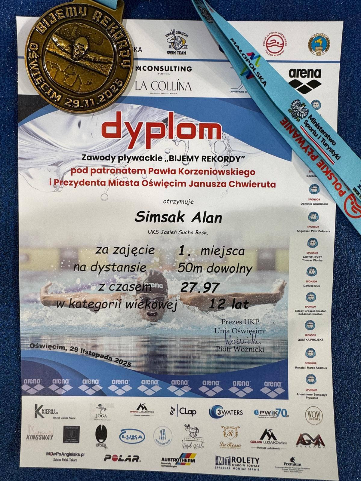 Sukcesem może pochwalić się Alan Simsak, który w kategorii 12-latków wywalczył dwa złote medale – na 50 m stylem dowolnym oraz 50 m stylem motylkowym, a także brąz na dystansie 100 m stylem zmiennym.