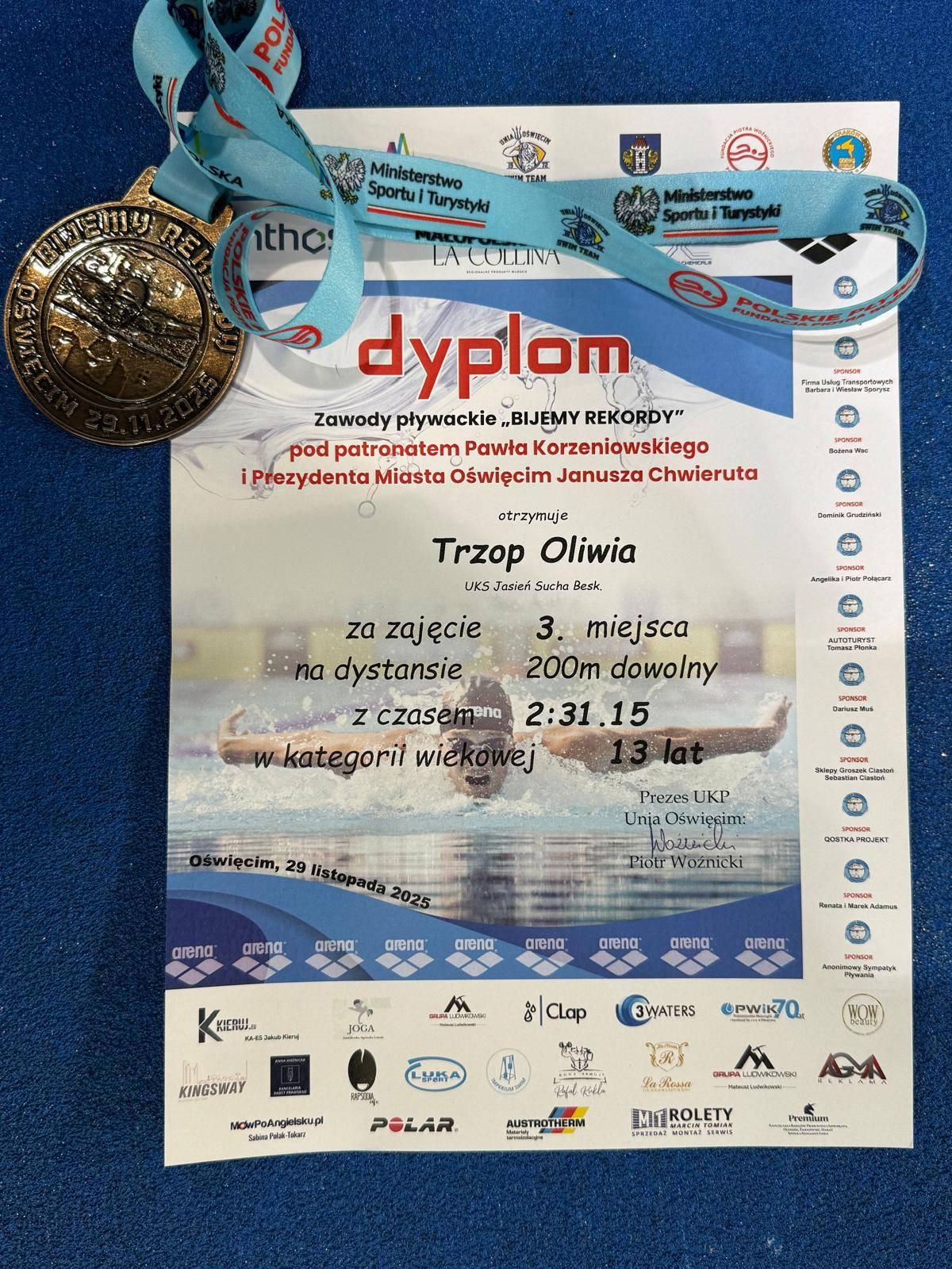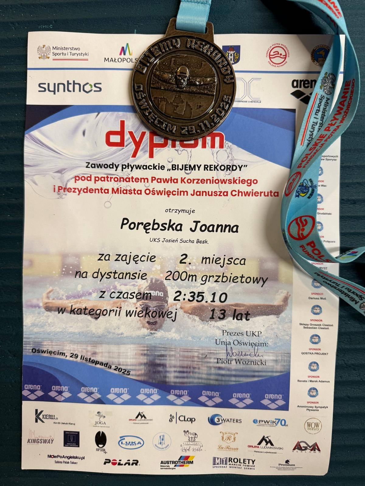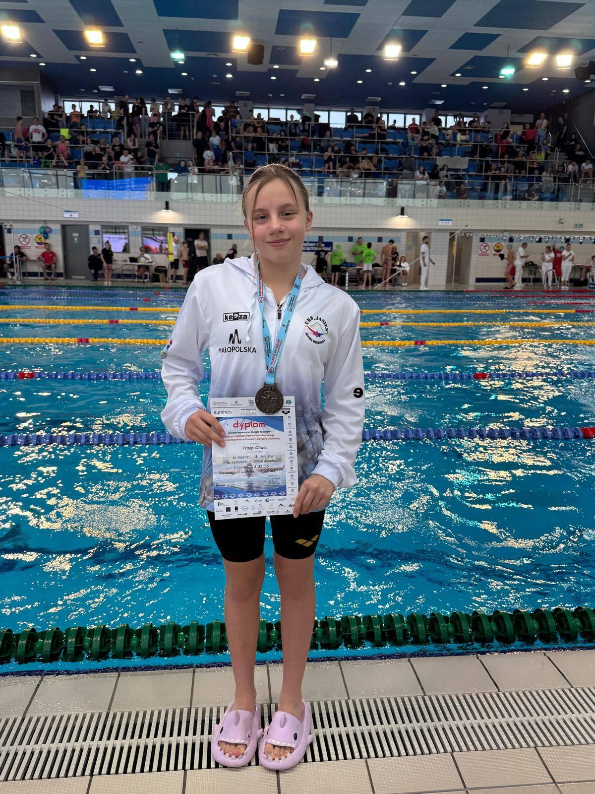 Po medal także sięgnęły zawodniczki. Joanna Porębska (13 lat) wywalczyła srebro na 200 m stylem grzbietowym oraz brąz na 100 m stylem dowolnym. Oliwia Trzop (13 lat) zdobyła brąz na 200 m stylem dowolnym.