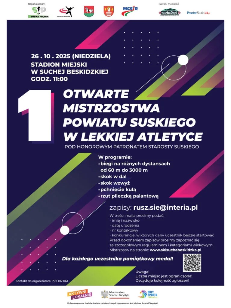 Zgłoszenia: należy przesłać na adres mailowy rusz.sie@interia.pl podając: imię i nazwisko, datę urodzenia, numer kontaktowy oraz konkurencje, w których uczestnik chce wystartować. Liczba miejsc jest ograniczona, dlatego organizatorzy zachęcają do wcześniejszej rejestracji.