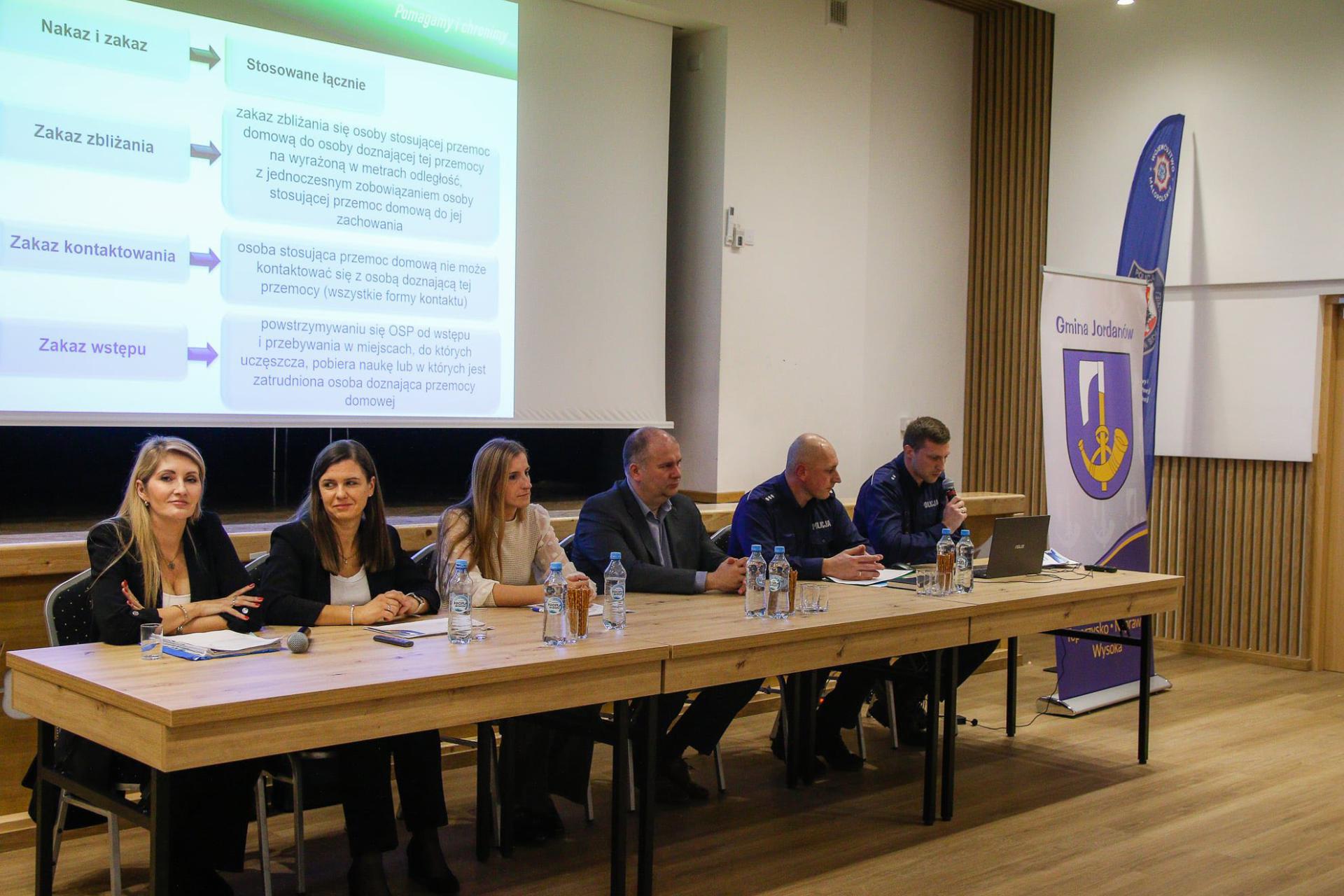 Tematem przewodnim spotkania było bezpieczeństwo mieszkańców, ze szczególnym uwzględnieniem problematyki przemocy domowej. Zastępca komendanta Robert Mazur zaprezentował nowe narzędzia, jakimi dysponują funkcjonariusze Policji w zakresie przeciwdziałania przemocy. O działalności Zespołu Interdyscyplinarnego opowiedziała jego przewodnicząca Katarzyna Świder, a następnie Agnieszka Skwarek, zastępca kierownika GOPS, poruszyła temat procedur dotyczących odbierania i zabezpieczania dzieci.W drugiej części odbyła się otwarta debata, podczas której mieszkańcy aktywnie zabierali głos, dzieląc się spostrzeżeniami i pomysłami na poprawę bezpieczeństwa w gminie.
