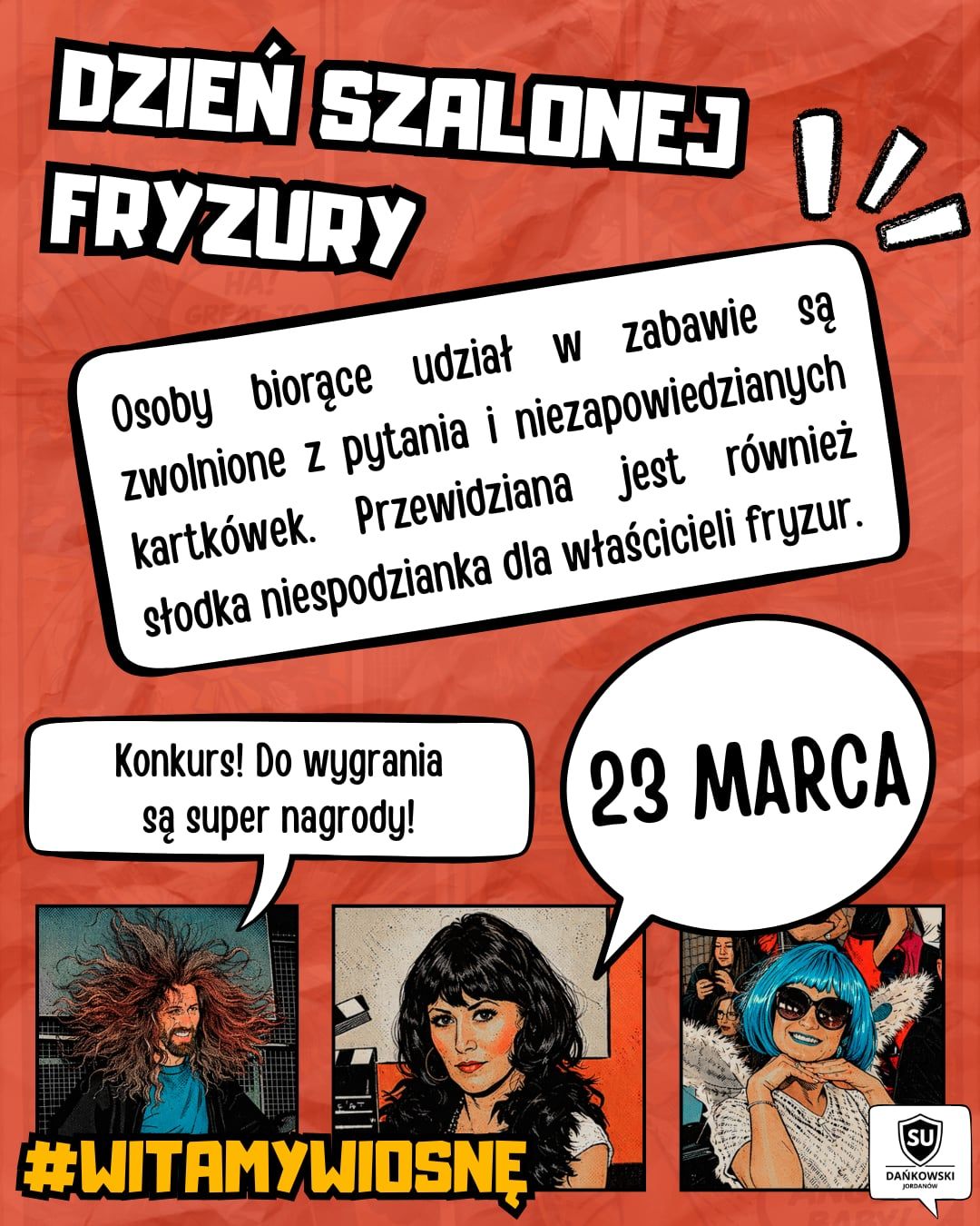 Zespół Szkół im. bł. ks. Piotra Dańkowskiego w Jordanowie zaprasza uczniów do udziału w „Dniu Szalonej Fryzury”, który odbędzie się 23 marca.
