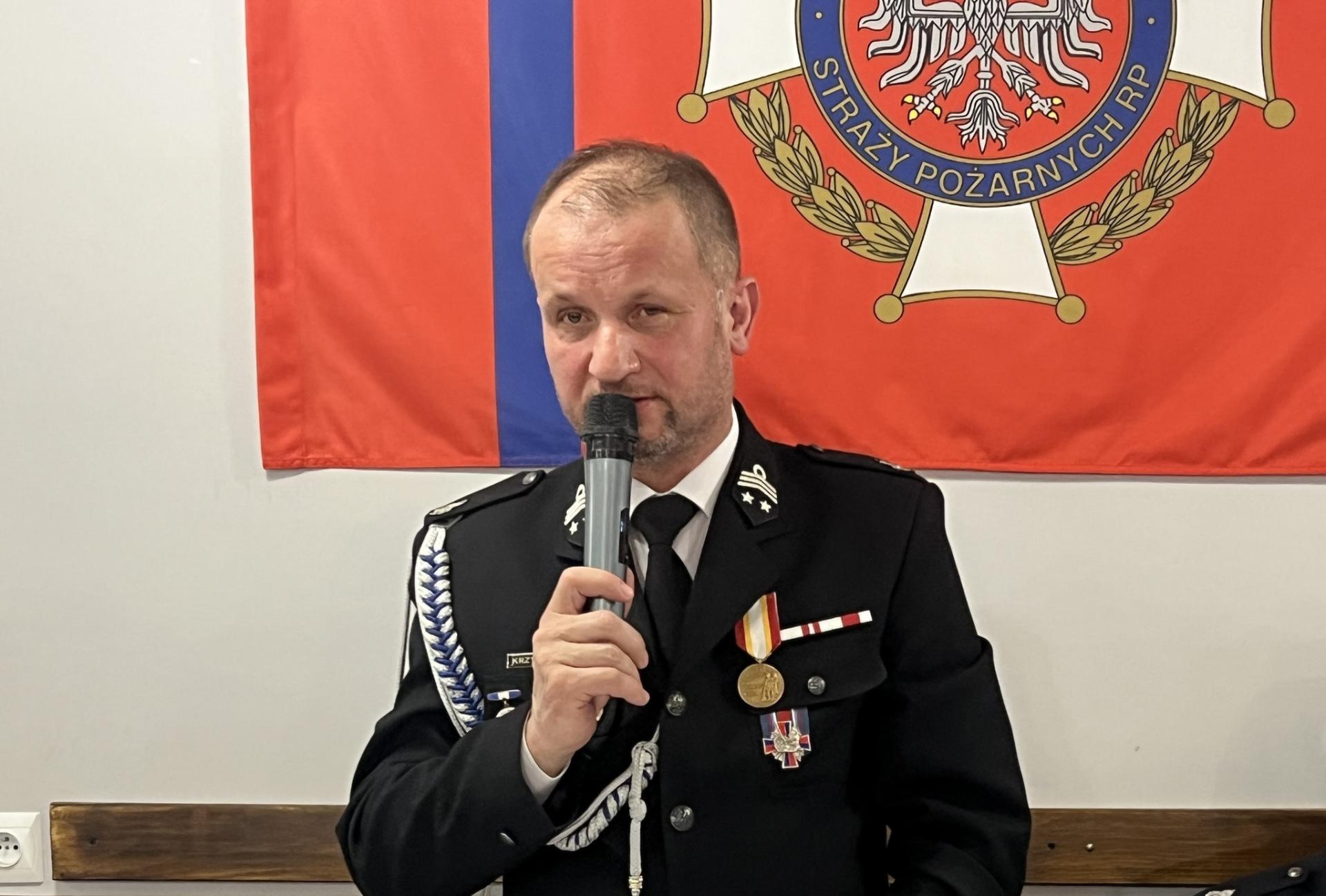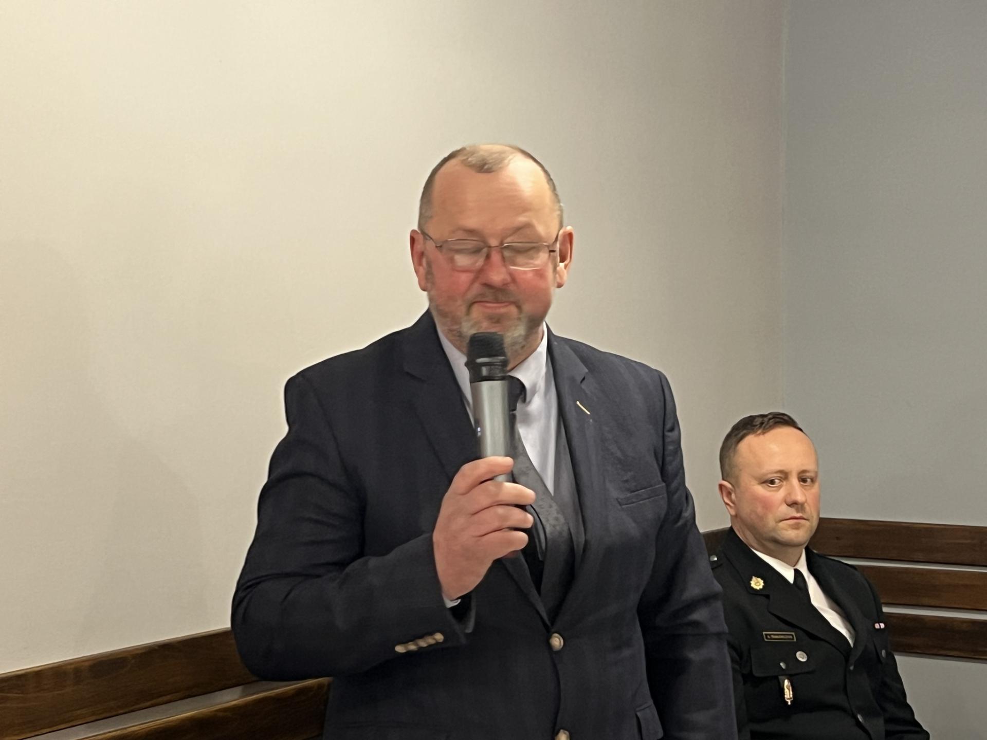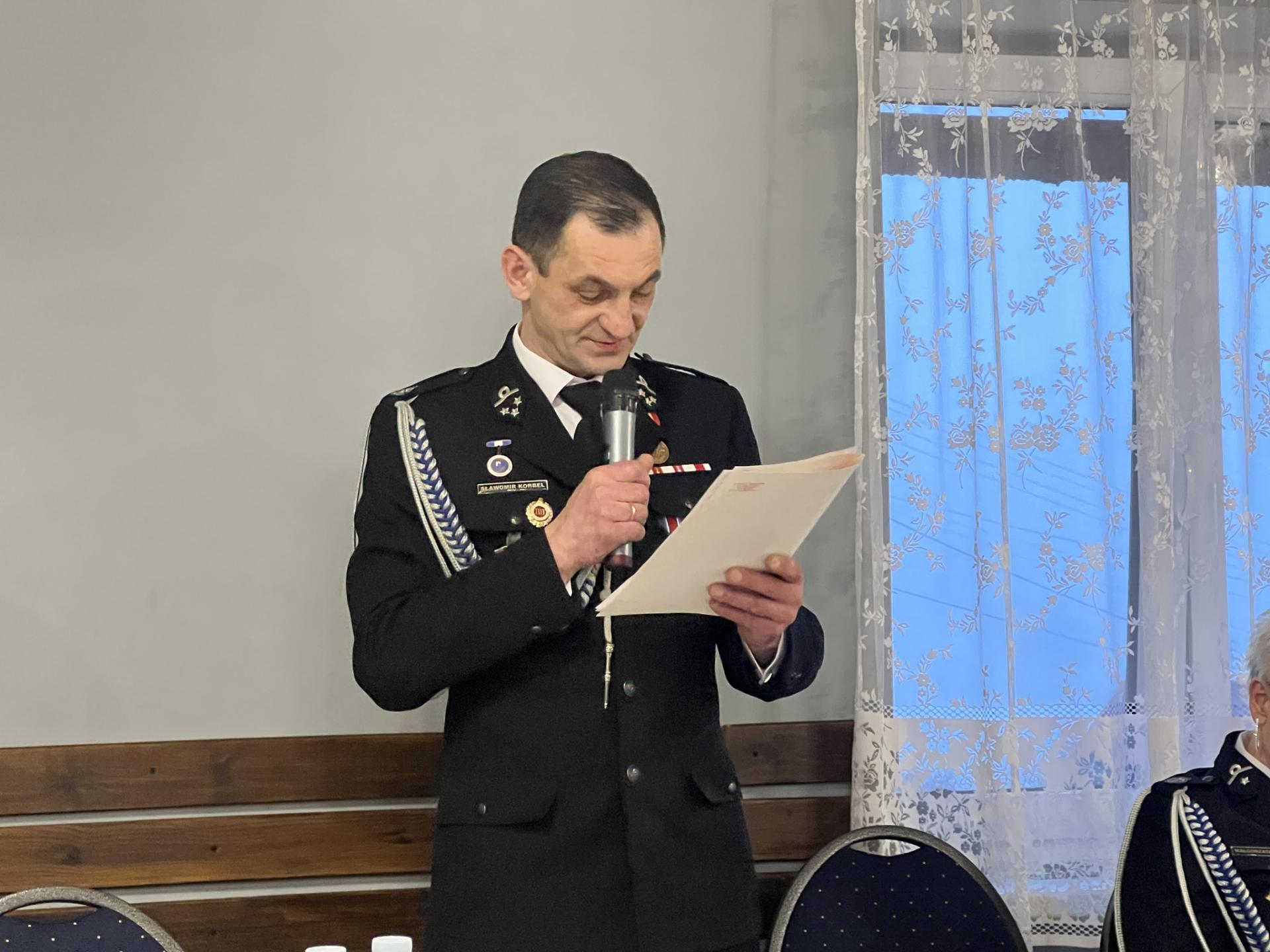 Szczególne słowa uznania i podziękowania skierowano do ustępującego naczelnika dh Sławomira Korbla za wieloletnią, ofiarną służbę oraz wkład w rozwój jednostki i bezpieczeństwo całej gminy.