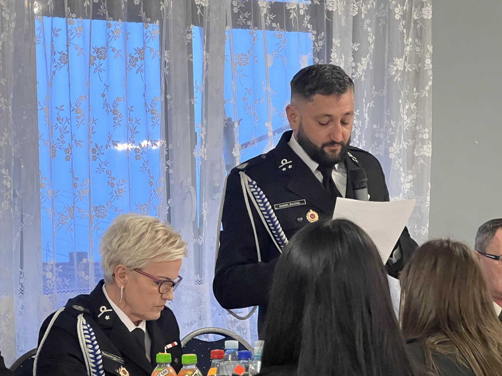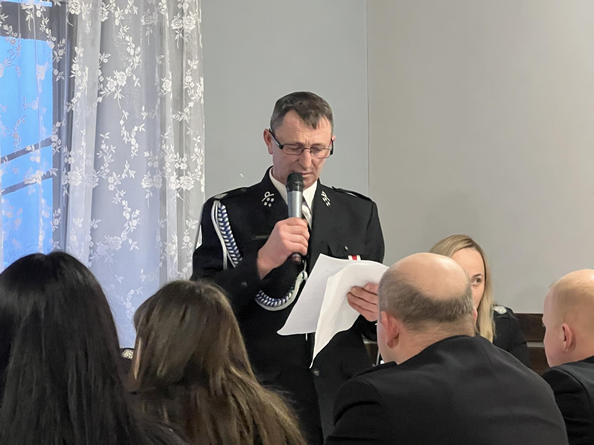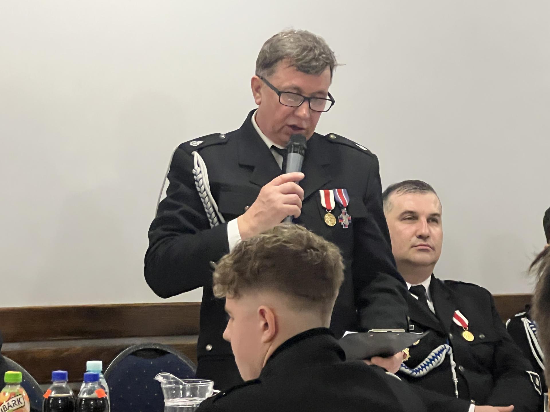 Szczególne słowa uznania i podziękowania skierowano do ustępującego naczelnika dh Sławomira Korbla za wieloletnią, ofiarną służbę oraz wkład w rozwój jednostki i bezpieczeństwo całej gminy.