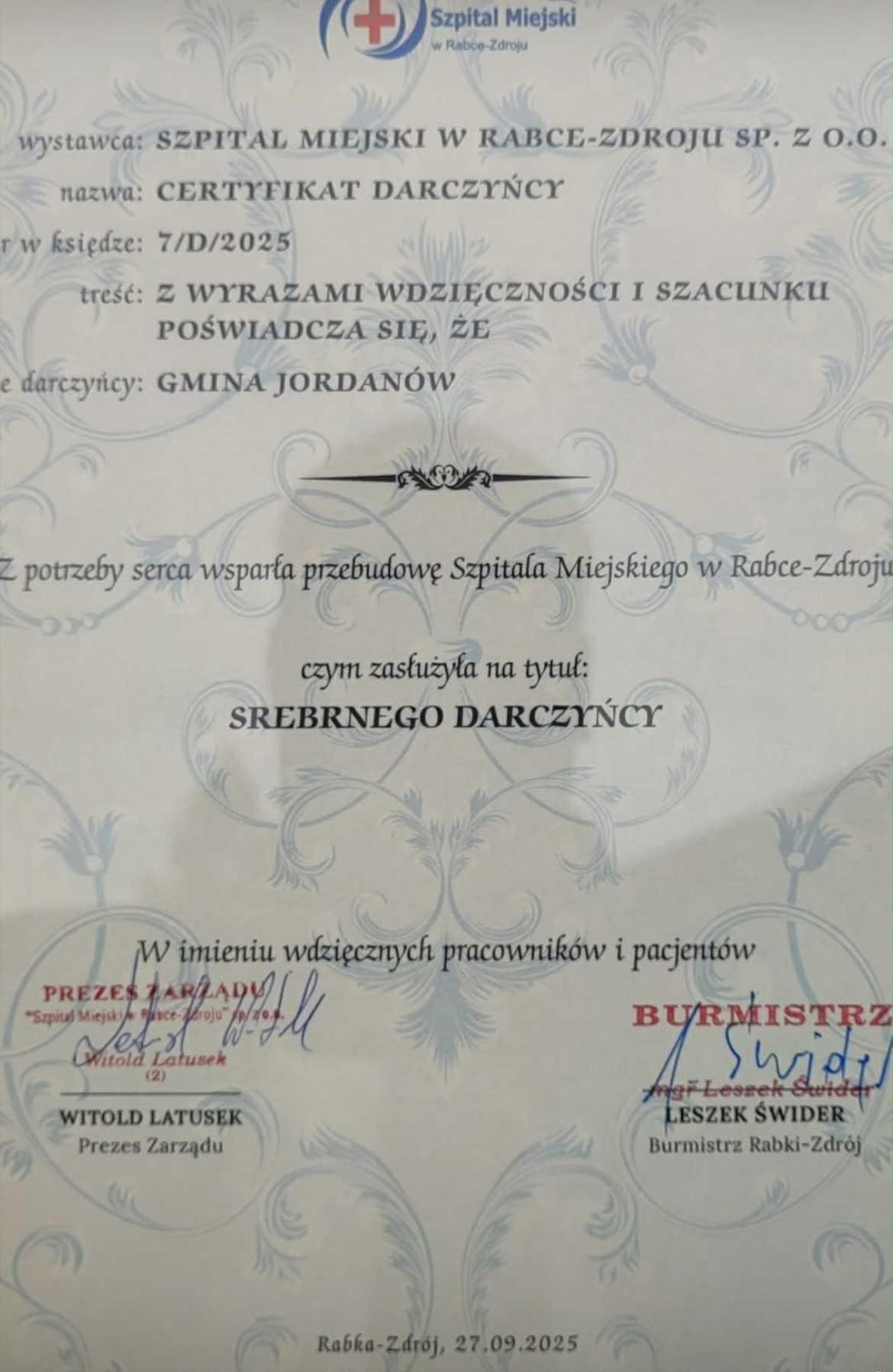 Wójt gminy Jordanów wyraził uznanie dla burmistrza Rabki – Zdroju, Leszka Świdra, oraz prezesa zarządu spółki „Szpital Miejski w Rabce – Zdroju” Sp. z o.o., Witolda Latuska. Podkreślił ich determinację, zaangażowanie i konsekwencję w realizacji przedsięwzięcia, które ma kluczowe znaczenie dla mieszkańców Podhala i powiatu suskiego.