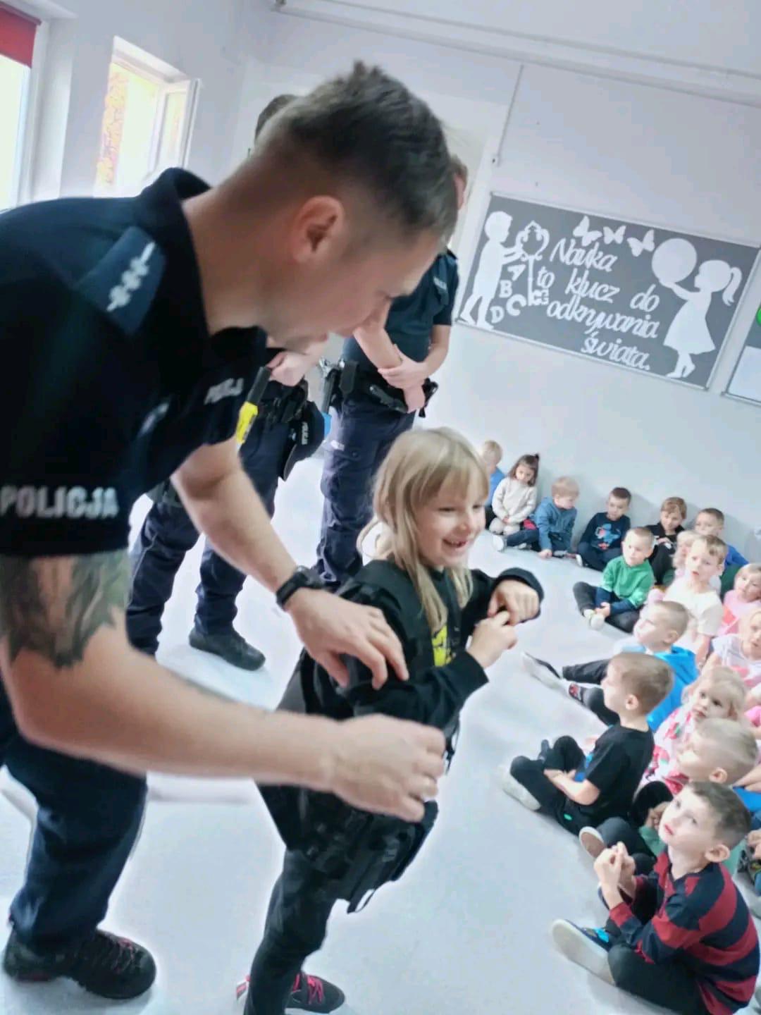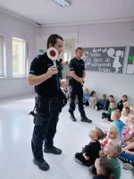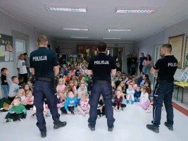 Dzieci miały też możliwość porozmawiać z funkcjonariuszami o codziennej pracy policji oraz o tym, jak dbać o własne bezpieczeństwo w różnych sytuacjach – na przejściu dla pieszych, w drodze do szkoły, a także w kontaktach internetowych.