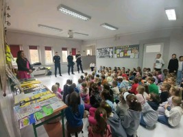 Podczas wizyty mł. asp. Mateusz Nalepa, dzielnicowy Toporzyska, włączył się w obchody Ogólnopolskiego Dnia Głośnego Czytania, prezentując uczniom bajkę dydaktyczną o bezpieczeństwie. Wspólne czytanie stało się okazją do rozmowy o odpowiedzialnym zachowaniu, rozwadze i wzajemnym szacunku.