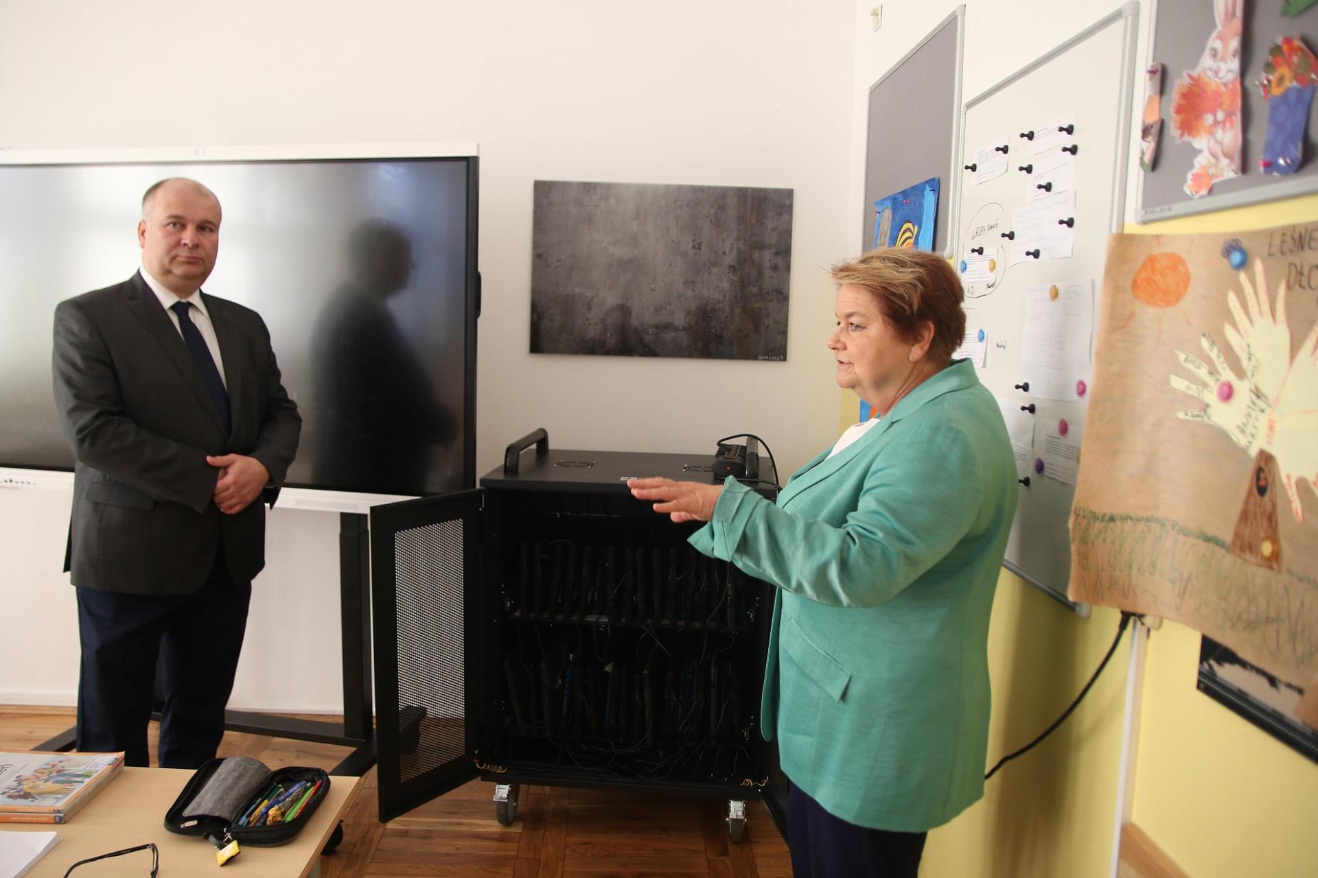 Podczas wizyty nie zabrakło również rozmów o planach na przyszłość oraz dalszych inwestycjach edukacyjnych. W spotkaniu uczestniczyła także wicedyrektor szkoły Kinga Drwal.