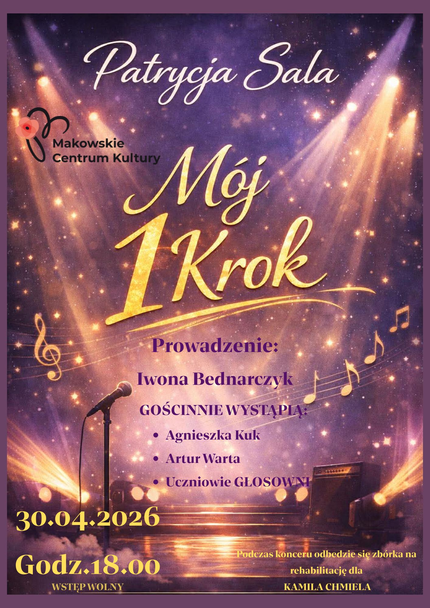 Na scenie obok Patrycji wystąpią m.in. Agnieszka Kuk oraz Artur Warta, a także utalentowani uczniowie Głosowni. Całość wydarzenia poprowadzi znana i ceniona Iwona Bednarczyk, gwarantując profesjonalną i ciepłą atmosferę.