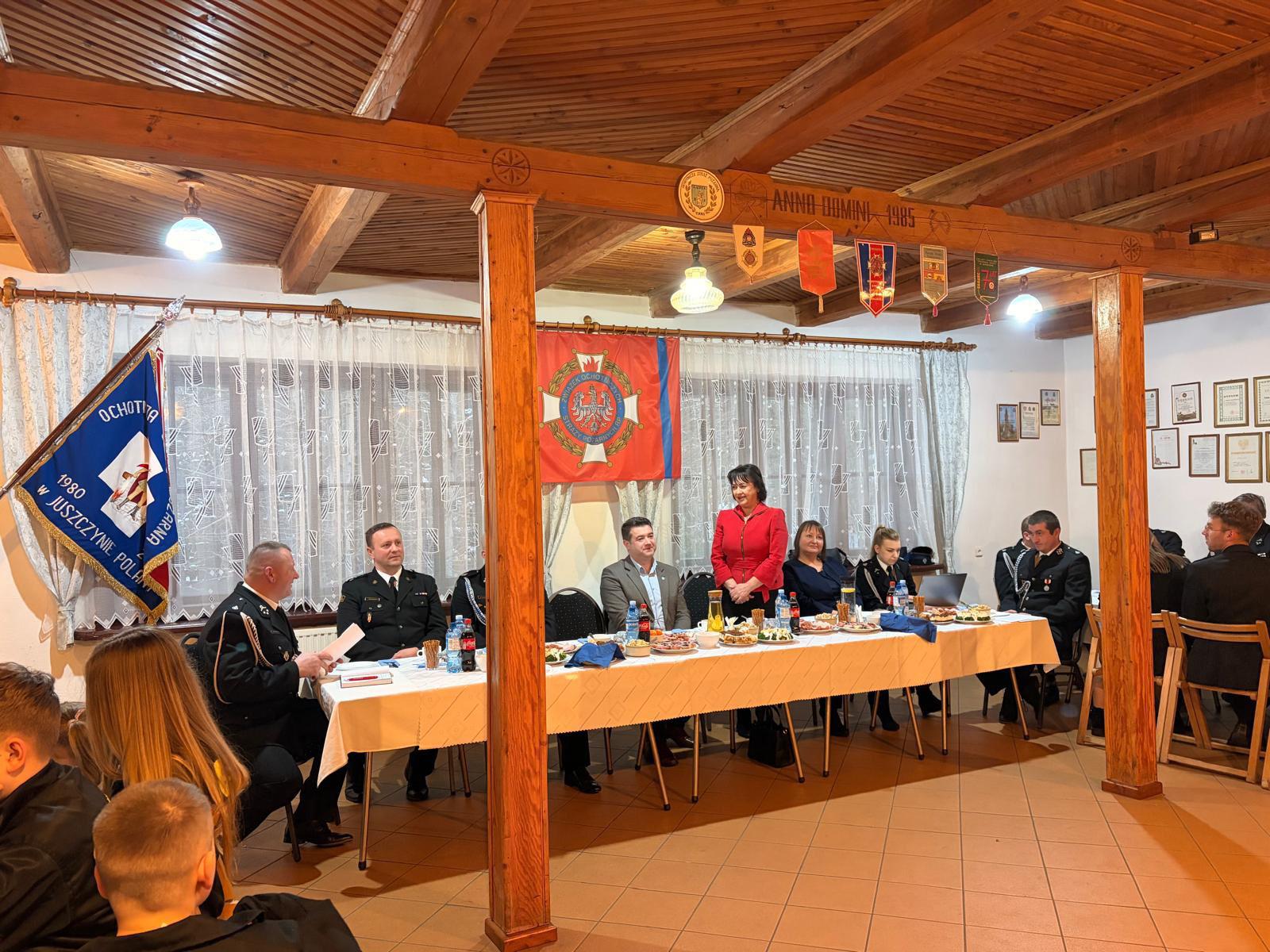 W zebraniu uczestniczyli zaproszeni goście, wśród nich radna Województwa Małopolskiego Danuta Kawa, burmistrz Maków Podhalański Michał Surmiak, starosta suski Józef Bałos, dowódca Jednostki Ratowniczo-Gaśniczej bryg. Łukasz Białończyk, gminny komendant podziału bojowego dh Mariusz Gajewski oraz sołtys i radna wsi Juszczyn Dorota Kaczmarczyk.
