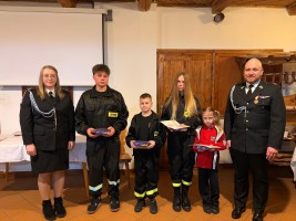 Ważnym punktem spotkania było wręczenie Brązowych Odznaczeń „Młodzieżowa Drużyna Pożarnicza” dla zasłużonych członków MDP oraz dyplomów dla młodych ochotników, którzy wzięli udział w konkursie plastycznym „OSP – strażacy w służbie drugiemu człowiekowi, nie tylko w czasie pożaru”. Był to moment szczególnie podniosły i symboliczny, pokazujący, że przyszłość jednostki budowana jest już dziś.