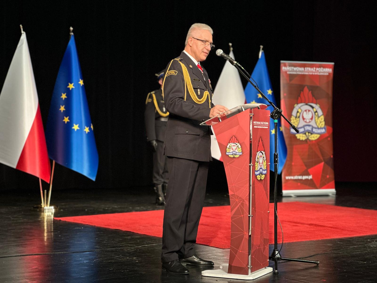 Podczas uroczystości podziękowano również st. bryg. Sławomirowi Kagankowi, który przeszedł na zaopatrzenie emerytalne. Wyrażono wdzięczność za lata oddanej służby, profesjonalizm oraz znaczący wkład w rozwój ochrony przeciwpożarowej w Małopolsce. Życzono mu zdrowia, spokoju i pomyślności na nowym etapie życia.