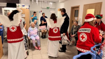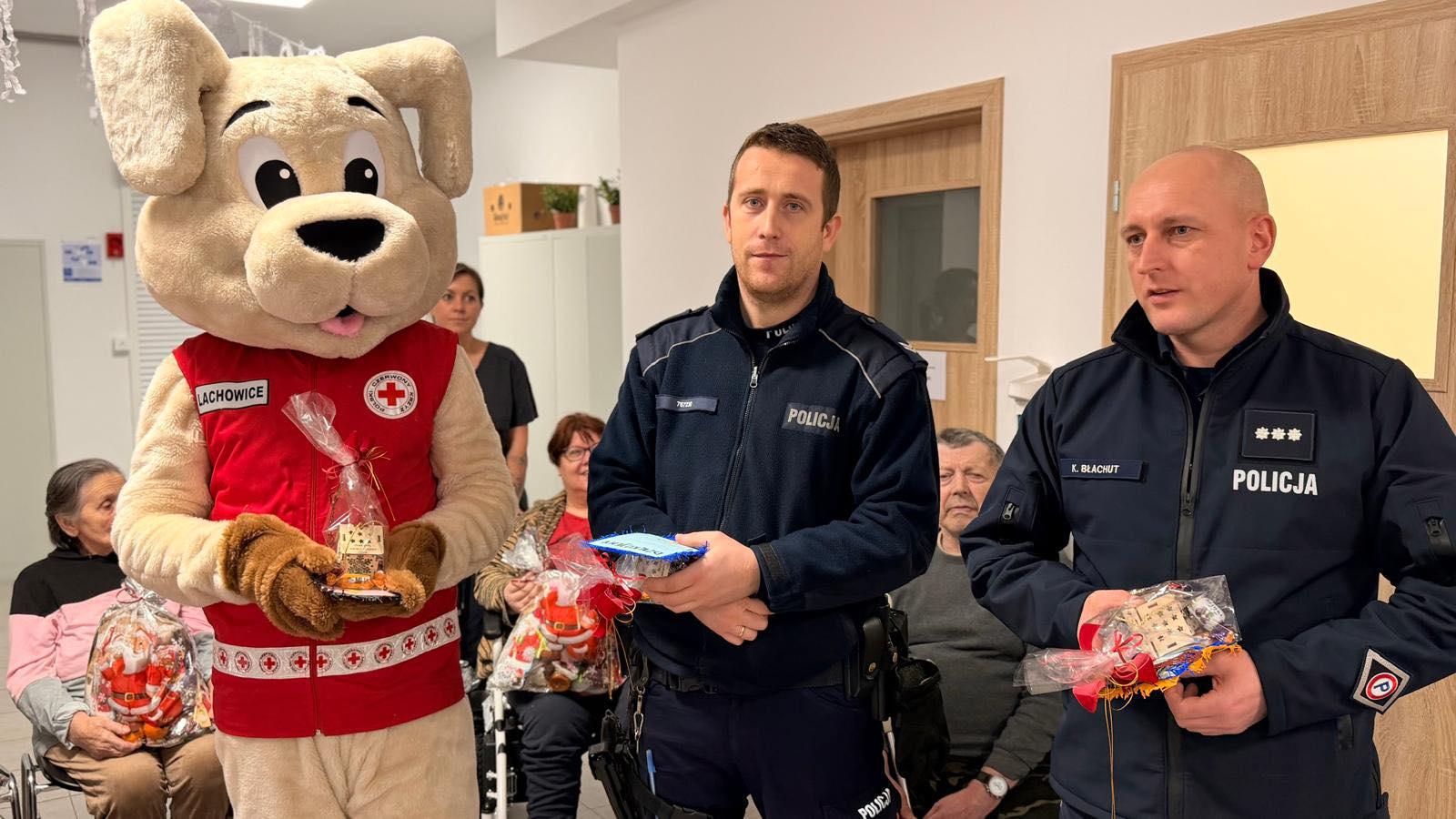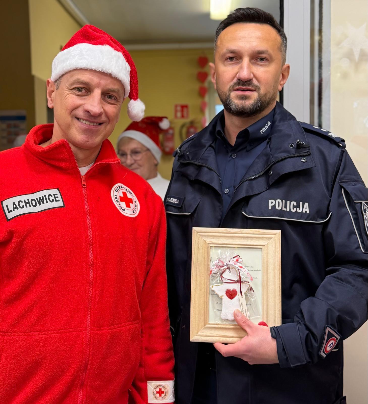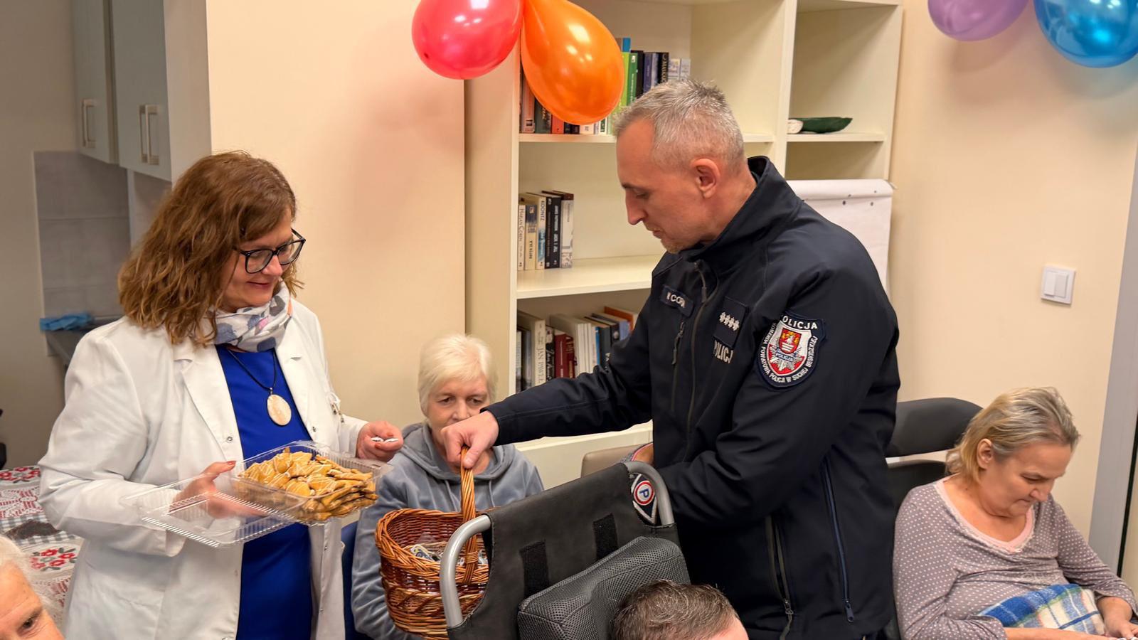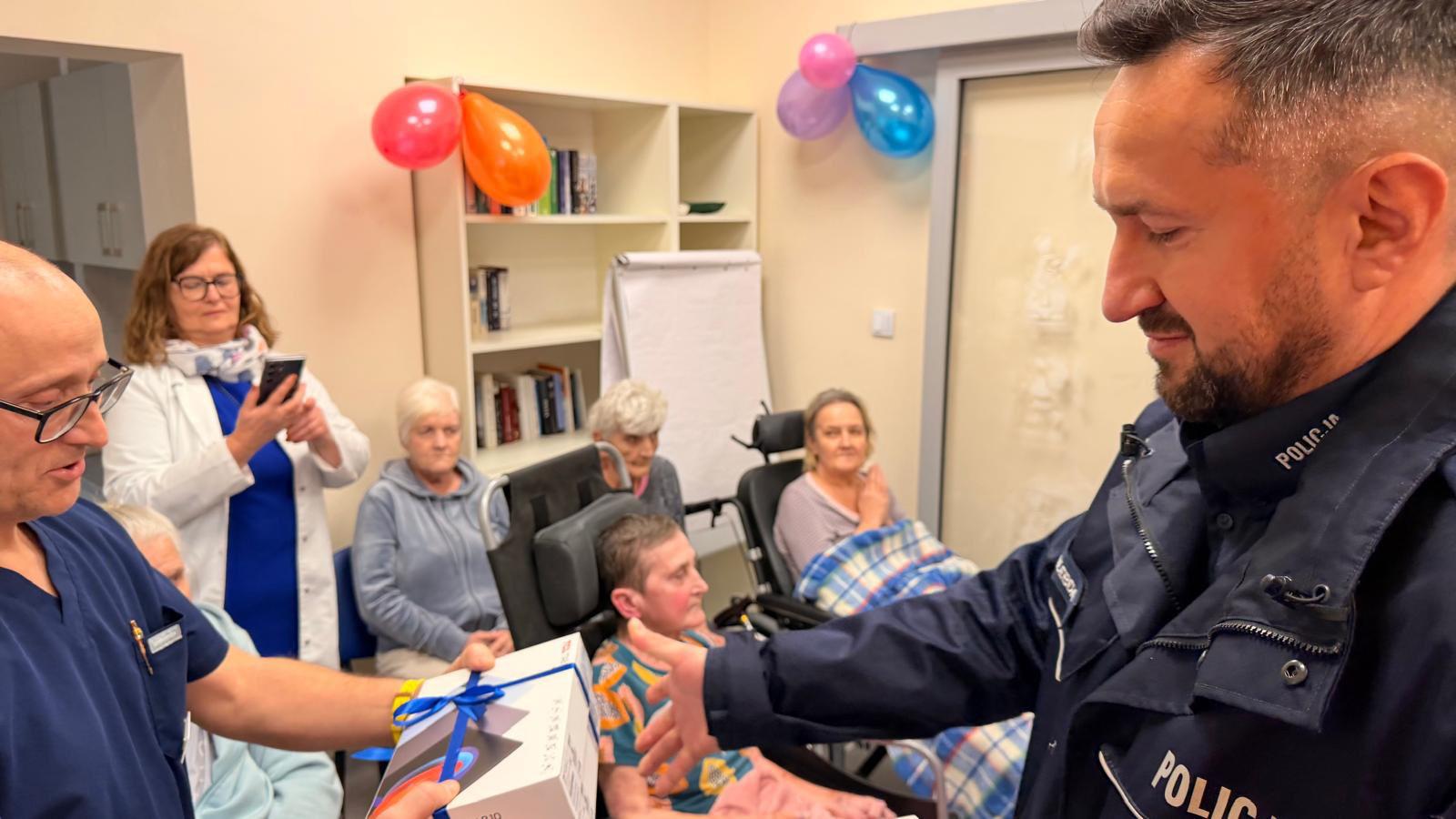Wzruszające wizyty odbyły się na Oddziale Medycyny Paliatywnej w Makowie Podhalańskim oraz w Łętowni. Policjanci wraz z wolontariuszami PCK przekazali seniorom symboliczne prezenty. Najważniejszą niespodzianką były nowoczesne tablety, zakupione dzięki wspólnej inicjatywie policjantów, policjantek oraz pracowników wszystkich jednostek Policji w powiecie suskim. Urządzenia te, w imieniu darczyńców, przekazał osobiście Komendant Powiatowy Policji w Suchej Beskidzkiej mł. insp. Daniel Chlebda, który wręczył je koordynatorowi oddziału, dr. n. med. Janowi Bachyryczowi.