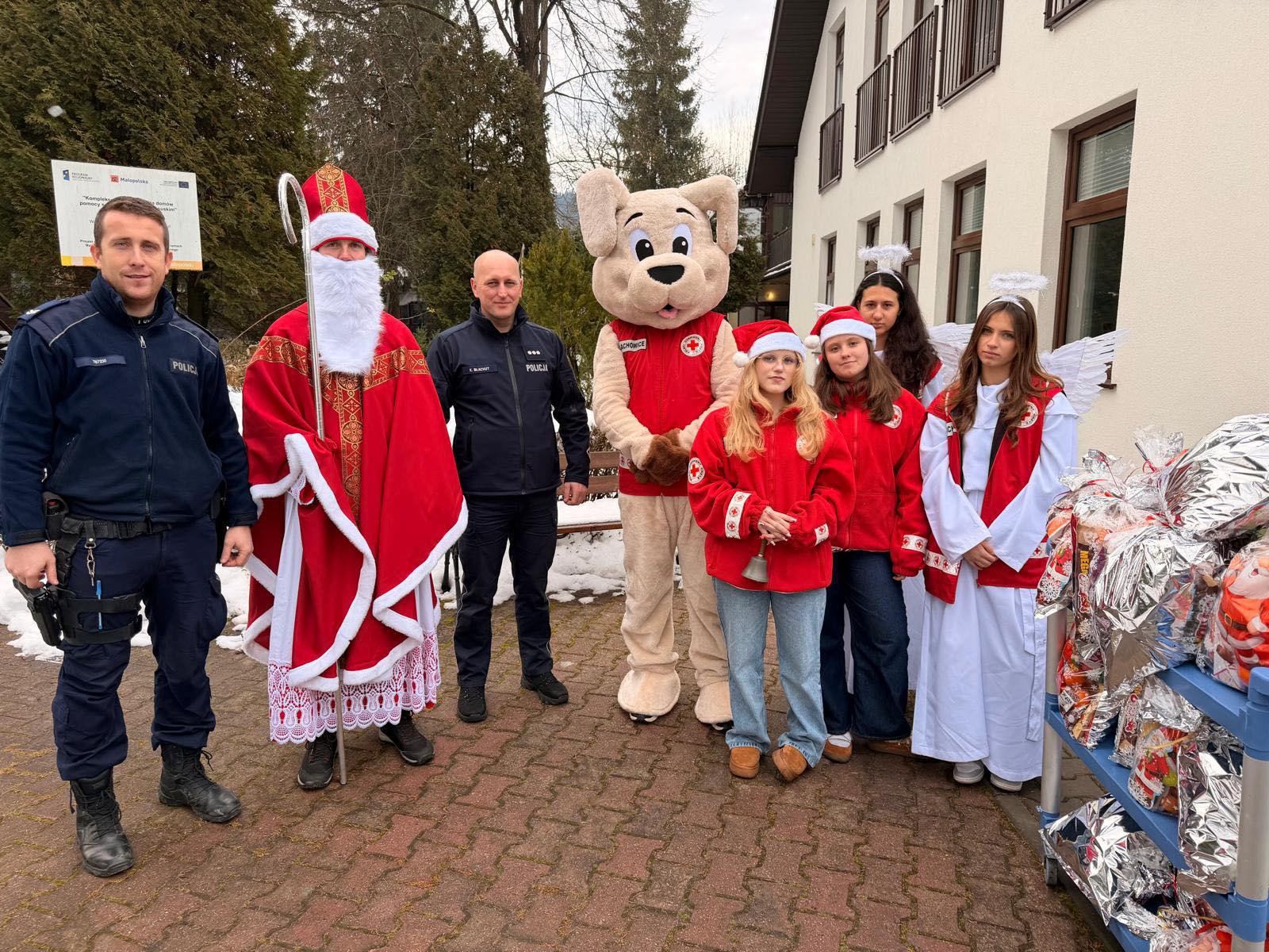 Mundurowi zawitali również do najmłodszych. 5 grudnia Oddział Dziecięcy Szpitala Rejonowego w Suchej Beskidzkiej odwiedzili policjanci wraz ze swoją maskotką, smokiem Polickiem oraz funkcjonariuszką Państwowej Straży Pożarnej.