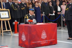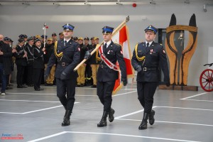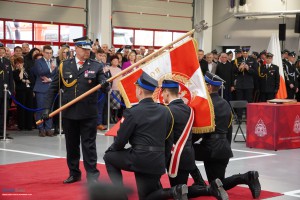 Uroczystość rozpoczęła się złożeniem meldunku najważniejszemu rangą przedstawicielowi administracji rządowej przez dowódcę uroczystości, kpt. Kamila Gugułę, po czym odegrano hymn państwowy. Następnie pożegnano dotychczasowe sztandary JRG PSP w Wadowicach i Andrychowie oraz odczytano akt ufundowania nowego sztandaru dla Komendy Powiatowej PSP. Po formalnym przekazaniu sztandaru zgodnie z ceremoniałem pożarniczym podpisano akt przekazania budynku i wręczono symboliczny klucz, a obiekt został uroczyście poświęcony.