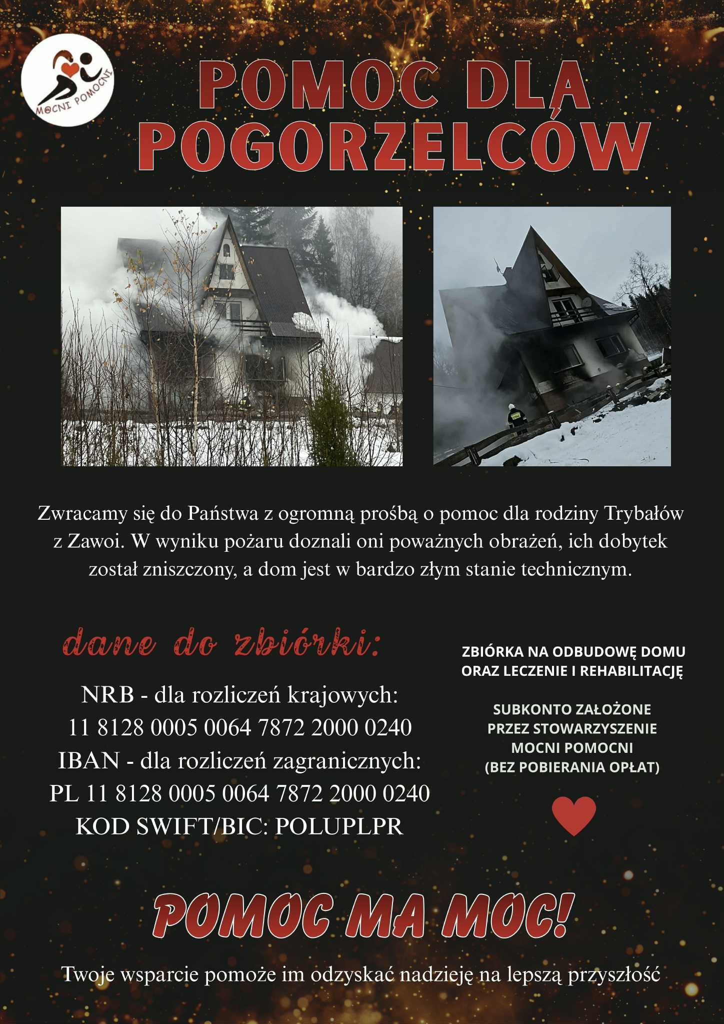 Pomoc dla pogorzelców – rodziny Trybałów z Zawoi !