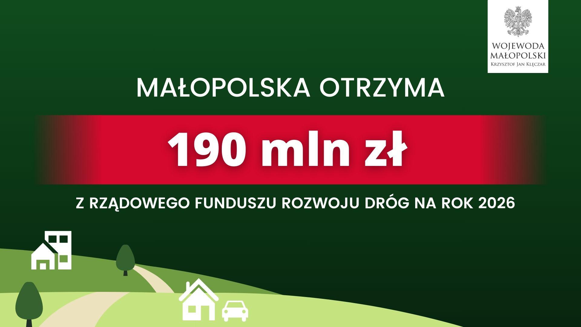 Kwota 190 mln zł dotyczy zadań, których realizacja rozpocznie się w 2026 roku. Środki z funduszu mogą zostać przeznaczone m.in. na budowę, przebudowę i remonty dróg powiatowych i gminnych, a także na poprawę bezpieczeństwa ruchu drogowego.