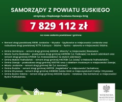 Środki przeznaczone zostaną na realizację zadań powiatowych i gminnych obejmujących remonty oraz przebudowę dróg. W powiecie suskim zaplanowano inwestycje zarówno na drogach powiatowych, jak i gminnych.