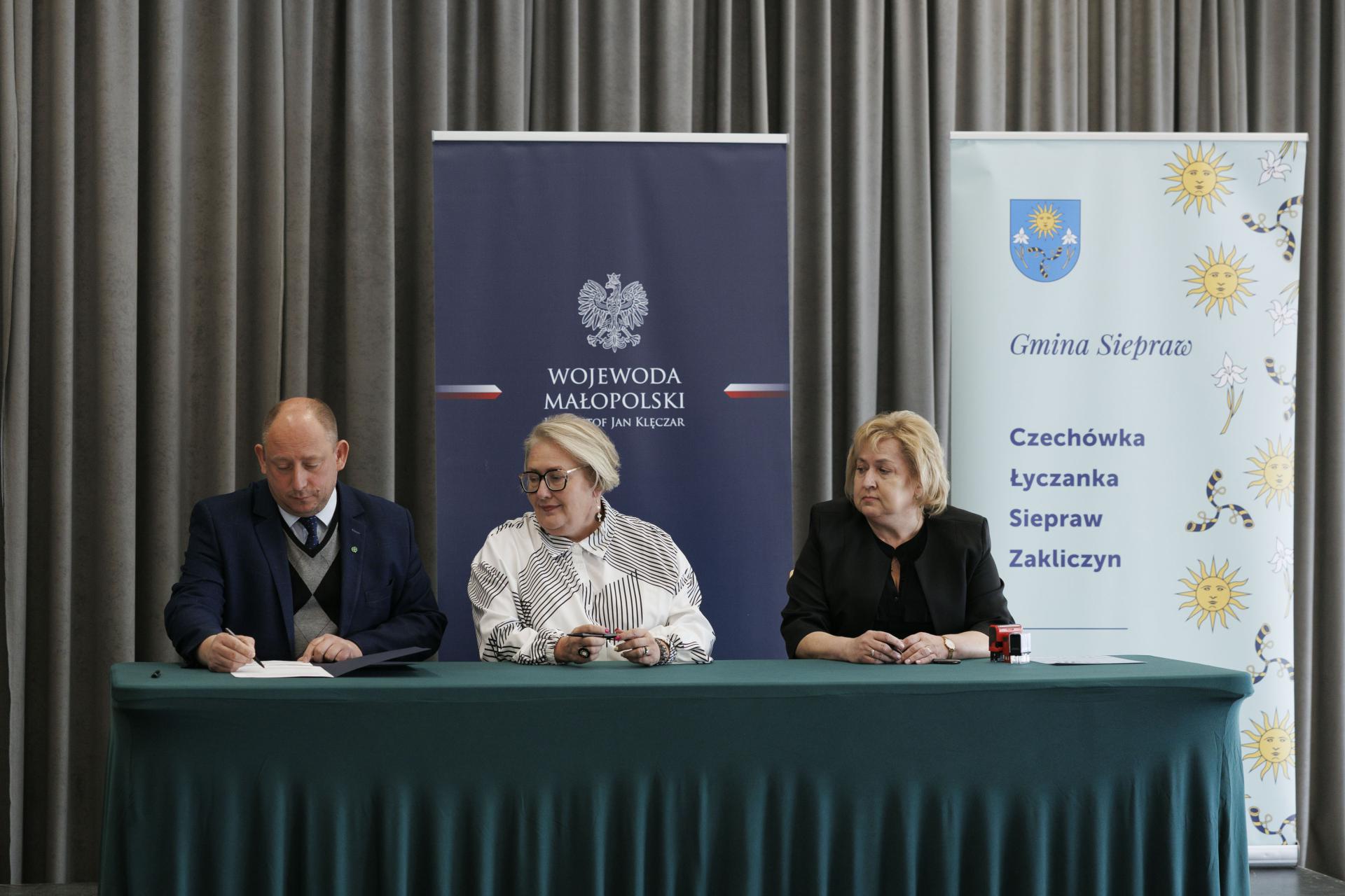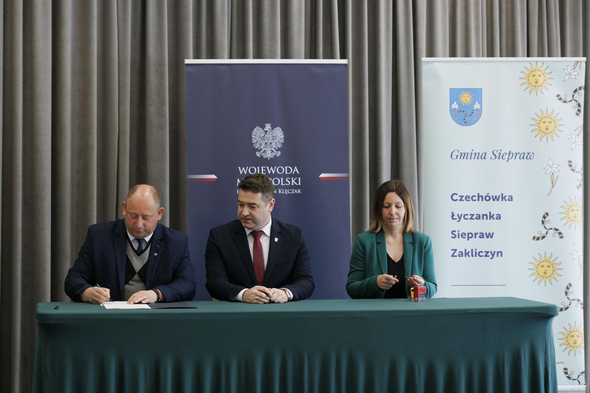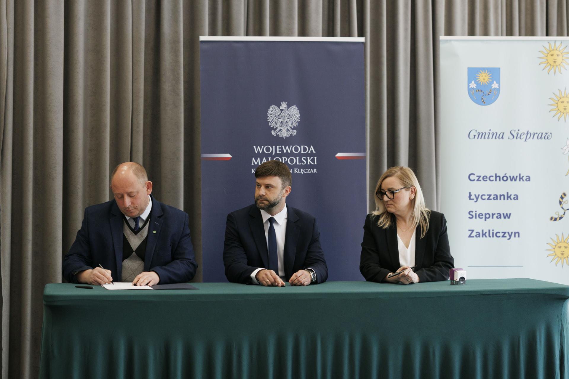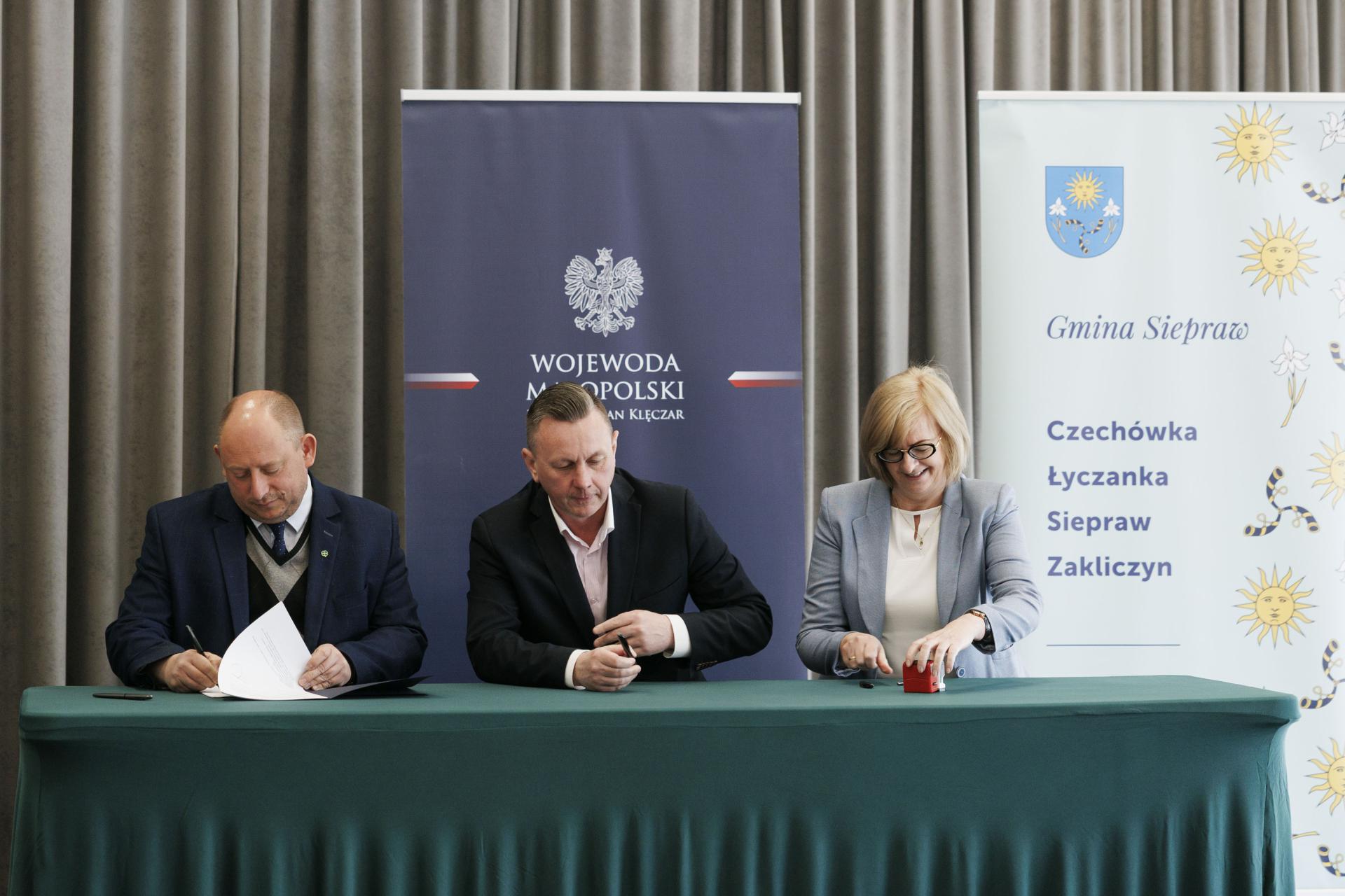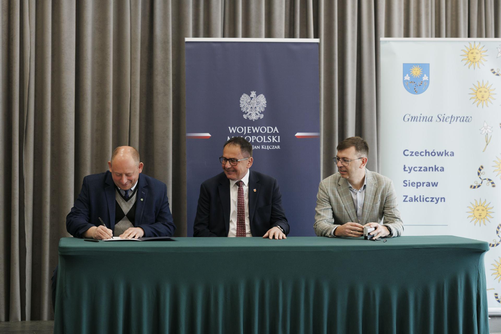 Umowy z przedstawicielami 26 samorządów podpisał wojewoda małopolski Krzysztof Jan Klęczar podczas spotkania w Sieprawiu.