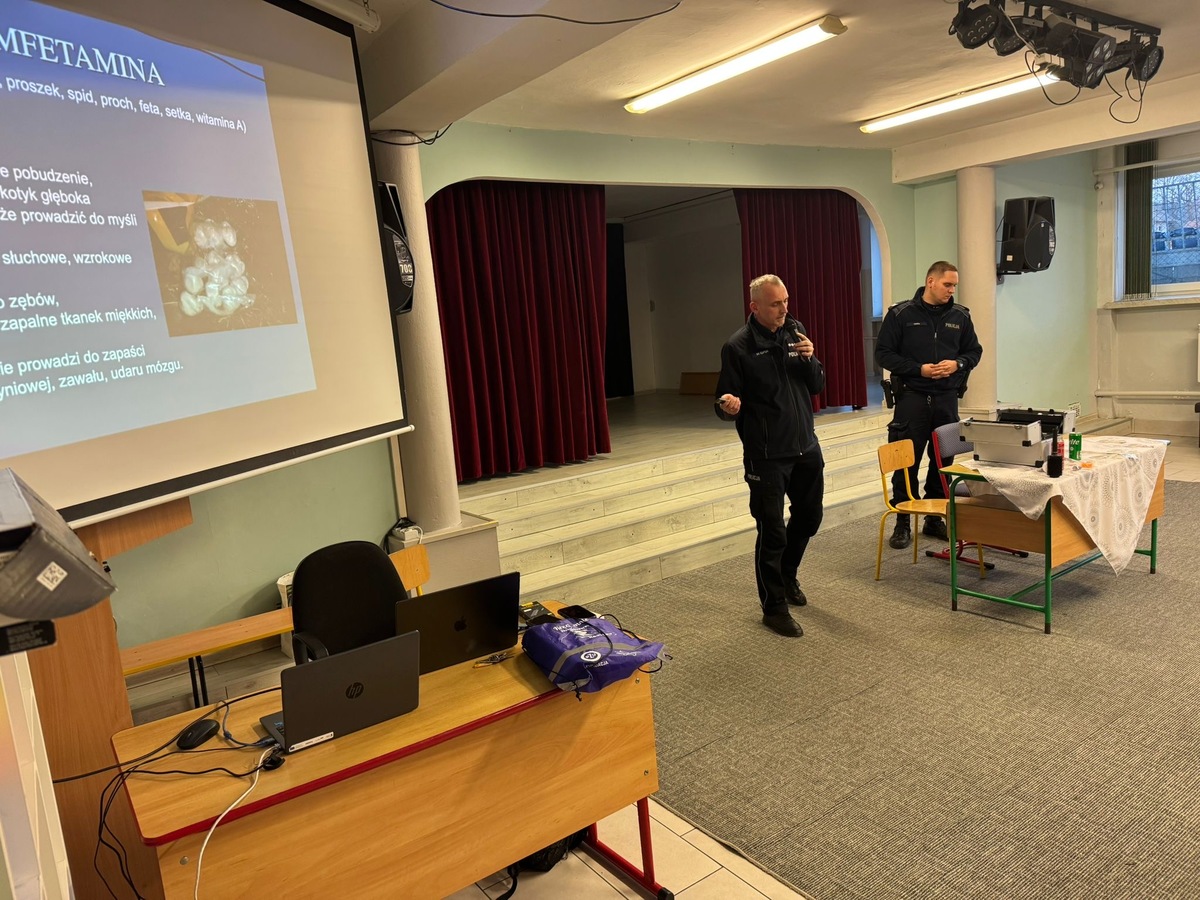 Podczas spotkań policjanci omawiali objawy mogące świadczyć o zażywaniu substancji psychoaktywnych, przedstawiali podstawowe rodzaje narkotyków oraz nowe substancje psychoaktywne, a także zwracali uwagę na zagrożenia wynikające z ich używania.