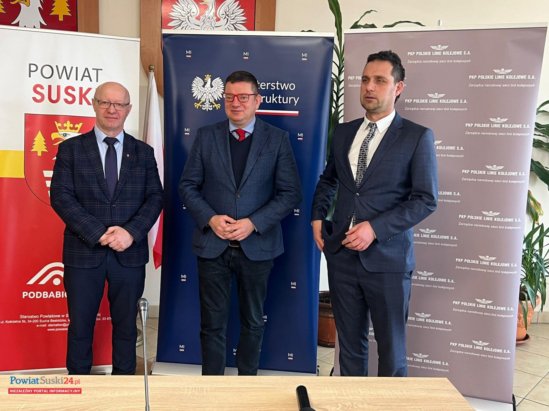 W wydarzeniu wzięli udział przedstawiciele administracji rządowej, inwestora oraz wykonawcy. W briefingu uczestniczyli minister infrastruktury Przemysław Koperski, dyrektor PKP Polskich Linii Kolejowych Mateusz Wanat, przedstawiciel wykonawcy – firmy Strabag Michał Zmuda, a także starosta suski Józef Bałos. Obecni byli również przedstawiciele samorządów z terenu całego powiatu suskiego, podkreślając ponadlokalne znaczenie inwestycji.
