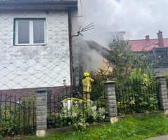 Pożar budynku mieszkalnego w Stryszawie - trwa akcja gaśnicza.
